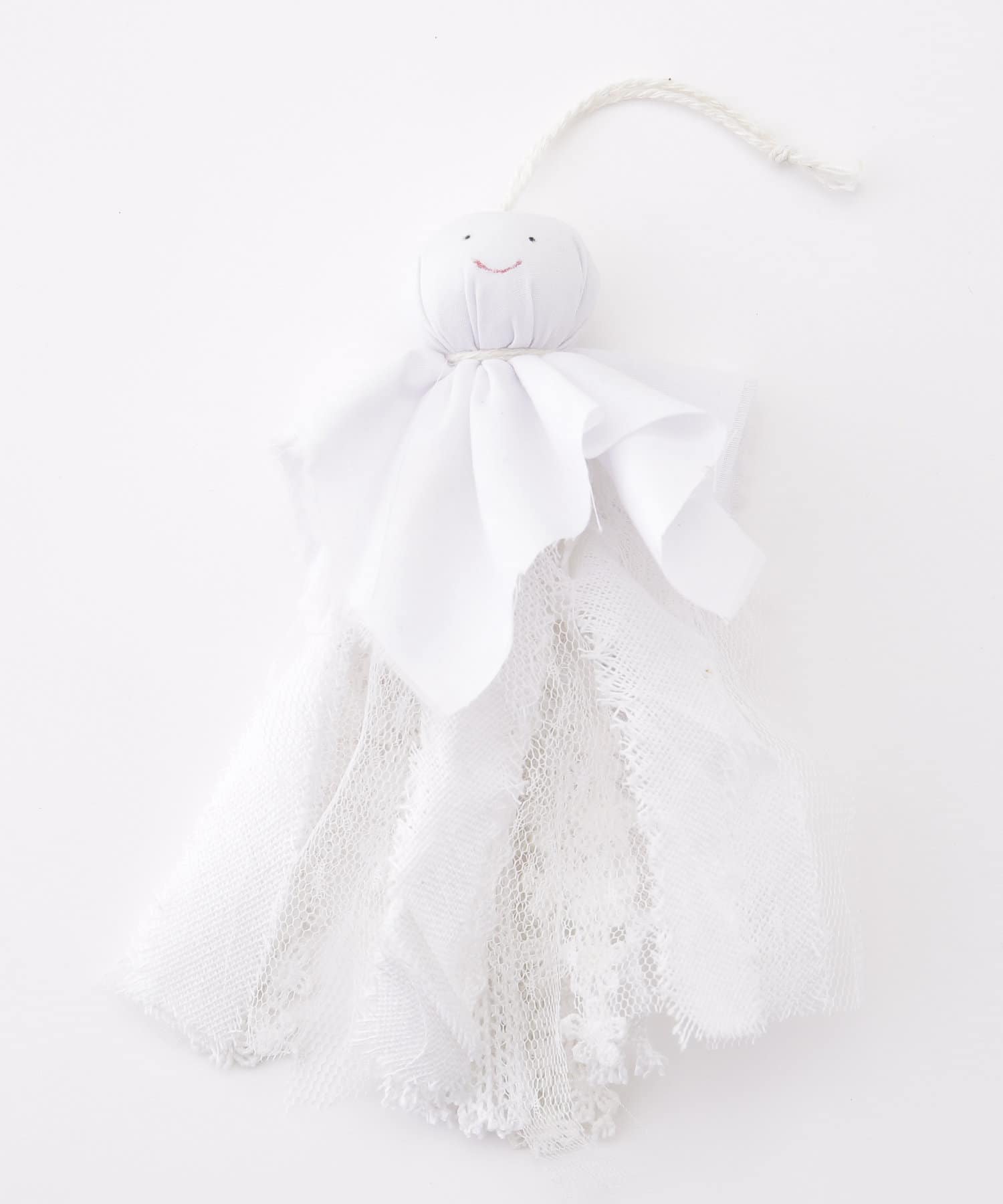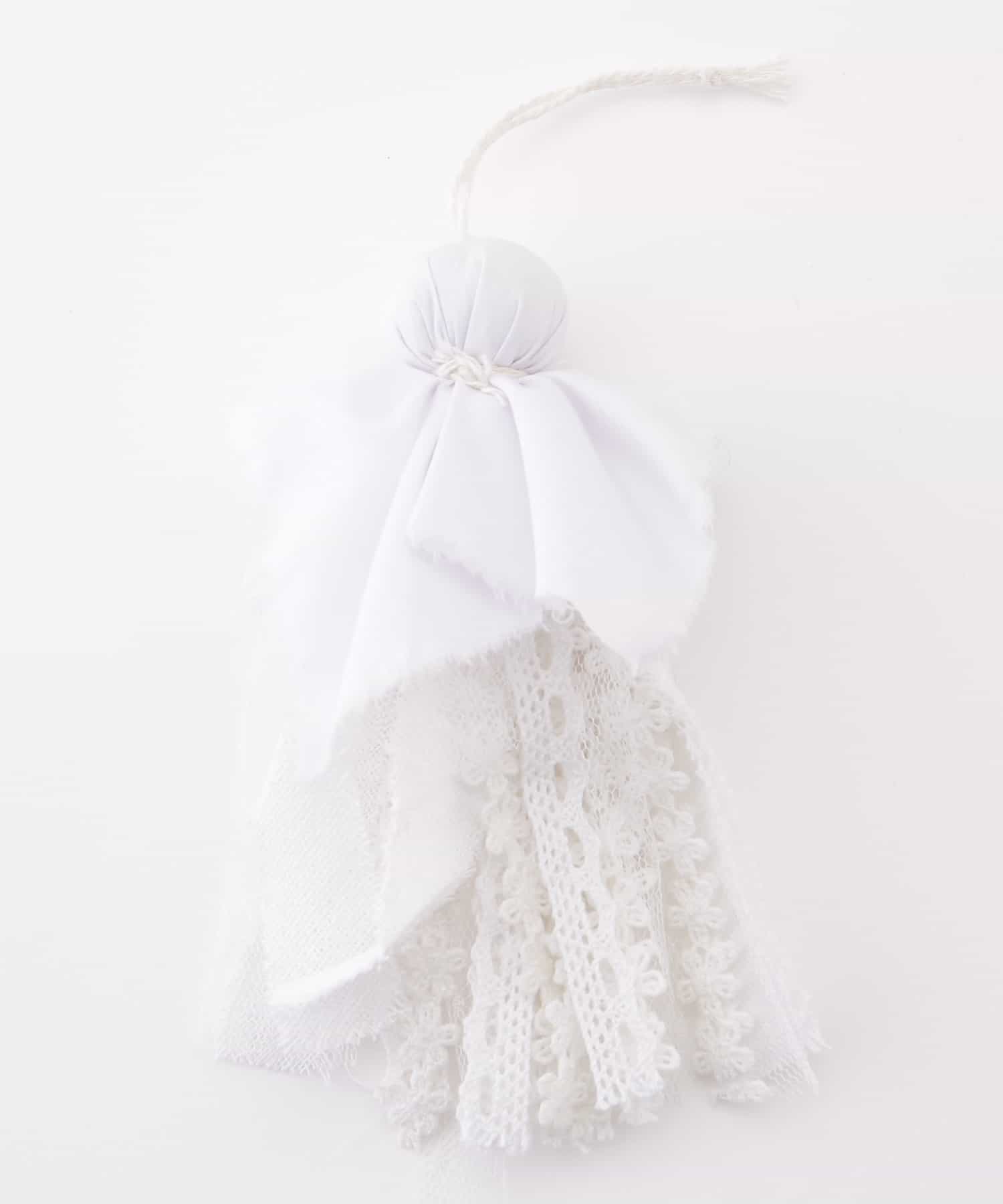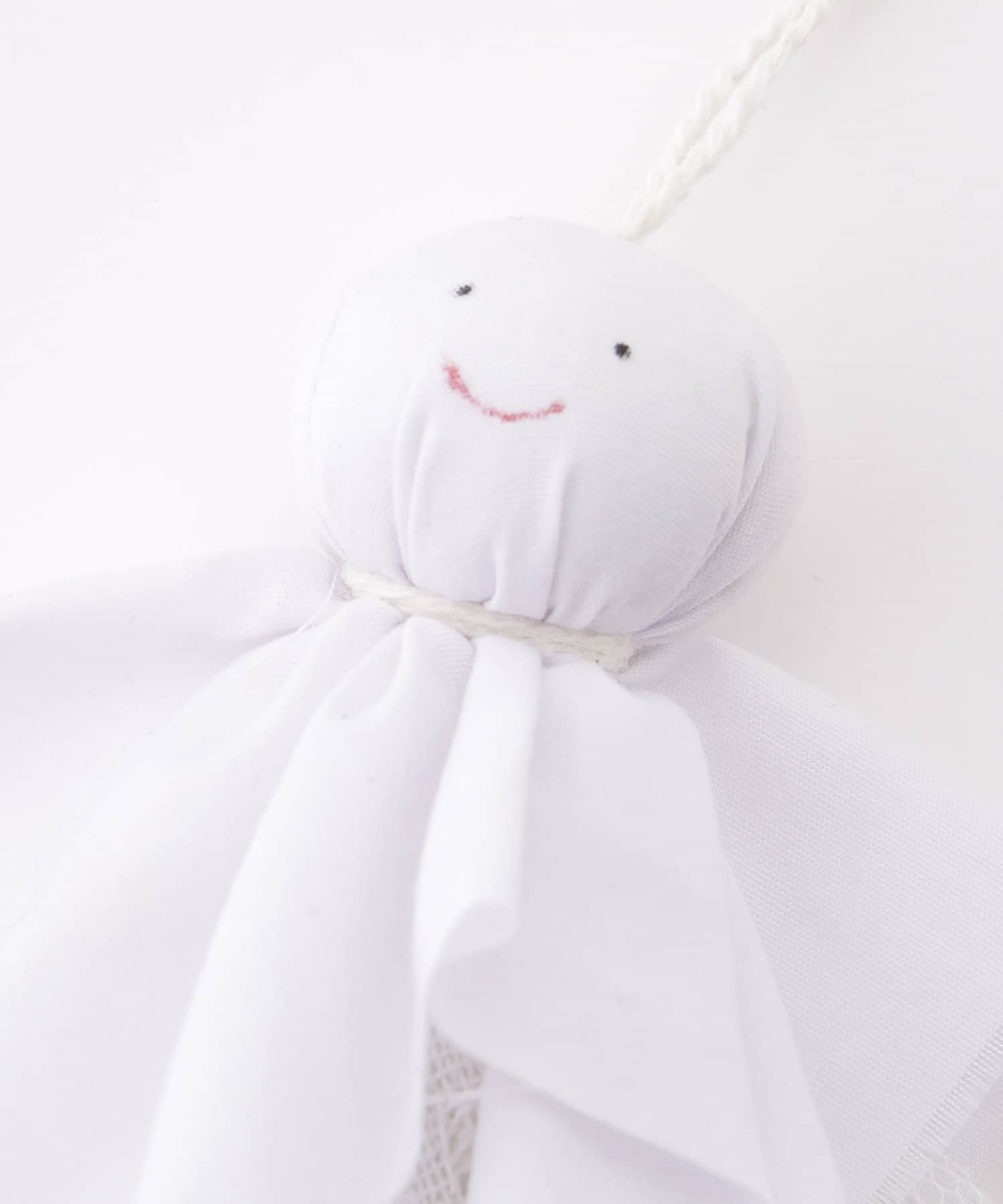 愛嬌のあるお顔とタッセル風のレースの端切れが手作り感がありつつも、