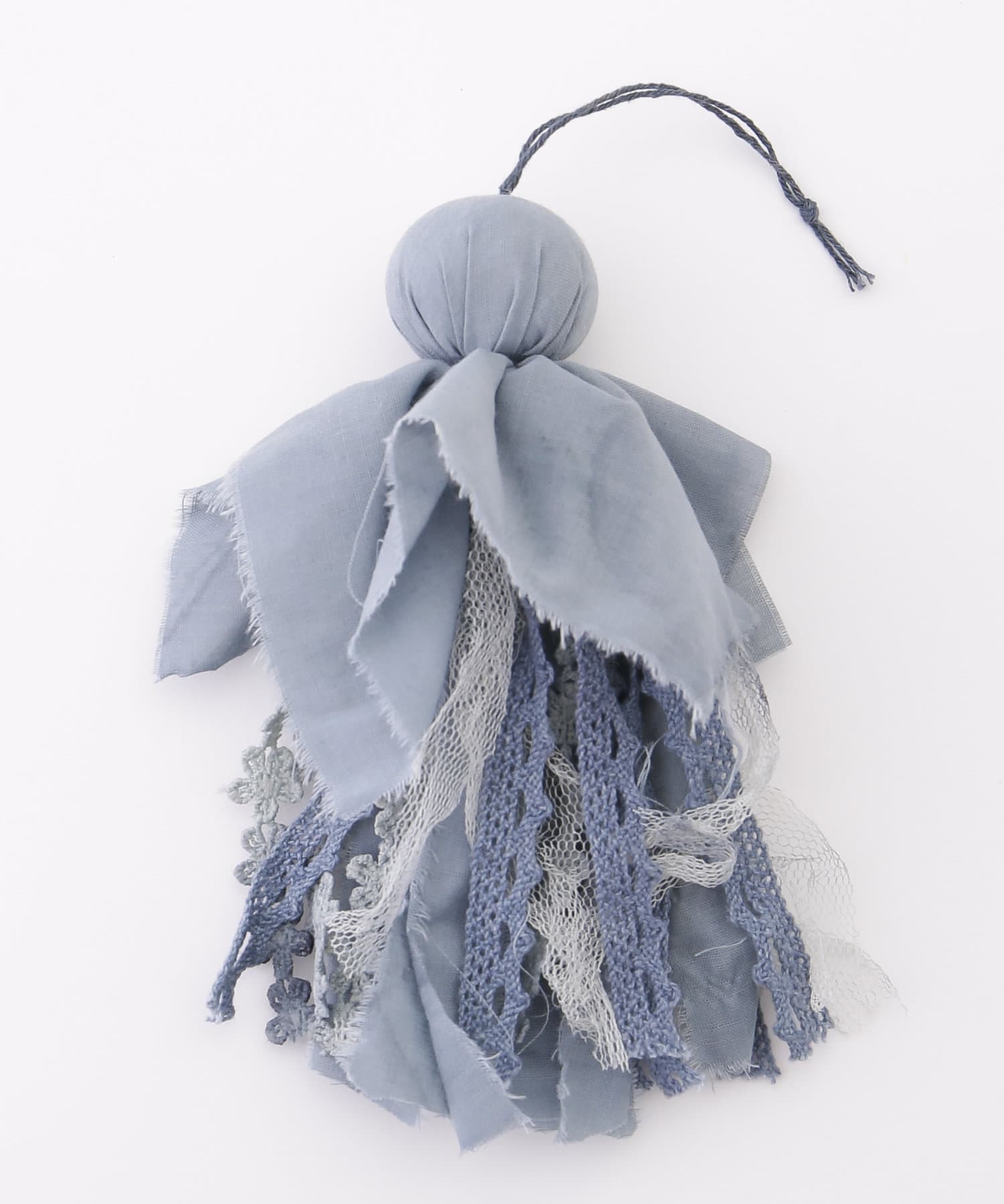 愛嬌のあるお顔とタッセル風のレースの端切れが手作り感がありつつも、