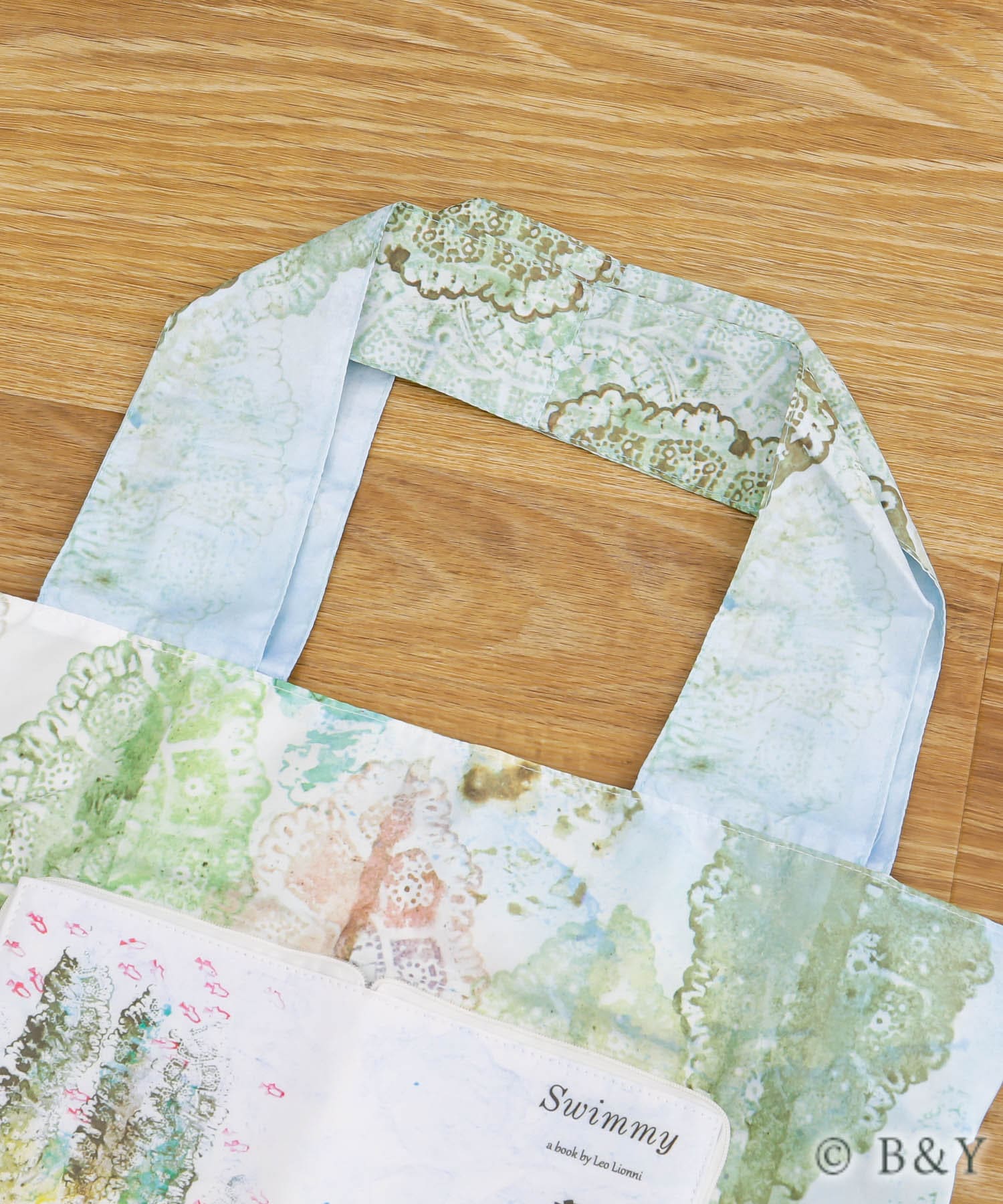 ちょっとしたお出かけ先で持って帰るものが増えたときに出すと、「いかにもエコバッグ」な感じに見えないのが◎。もう1種類と迷いましたが、レオ・レオニは素直な色使いが持ち味の作家なので、より明るめのスイミーにしました。レオ・レオニの世界が身近に感じられるうれしいバッグです。