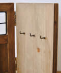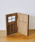 味のある木製のドアの形をしたキーフック。