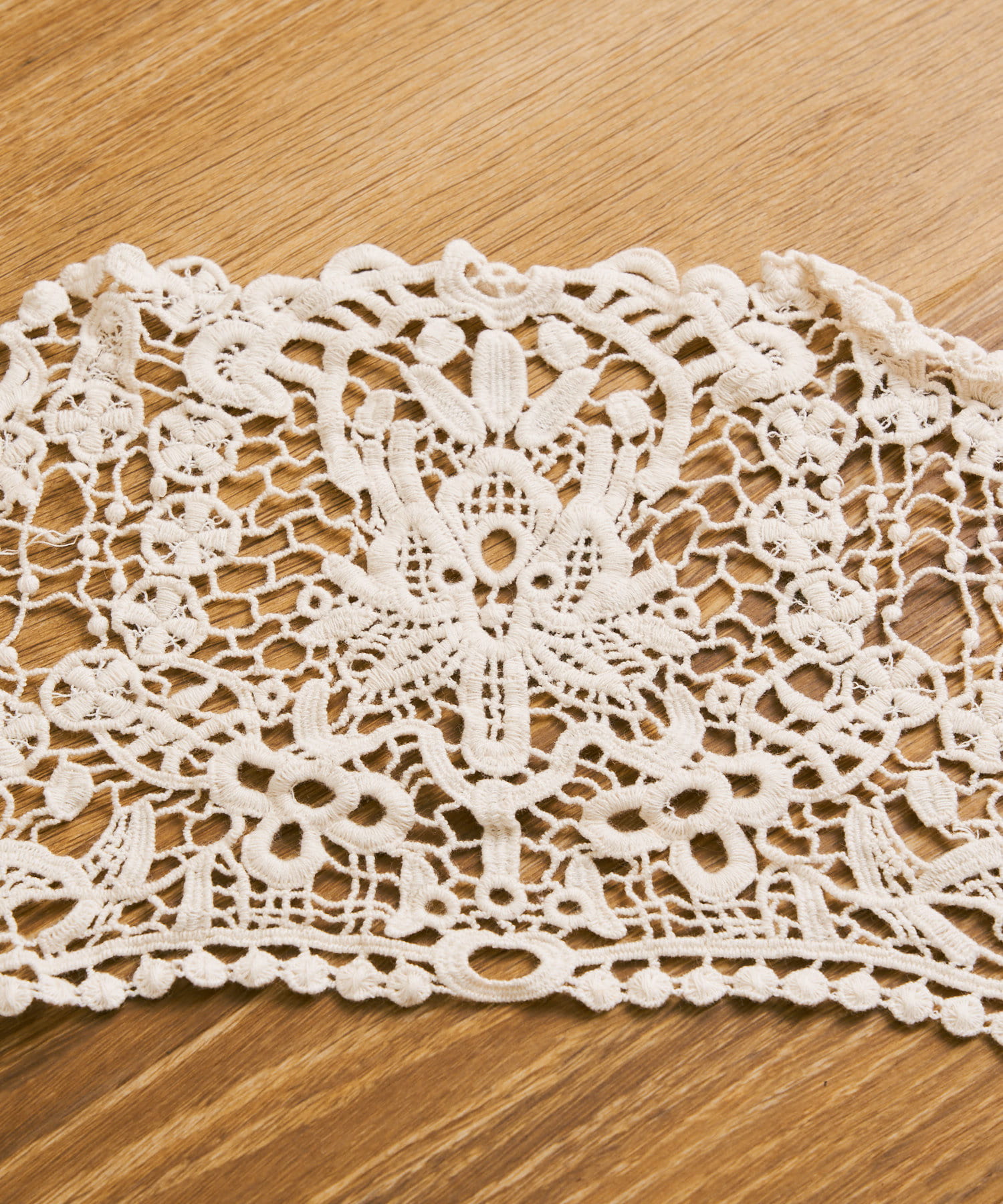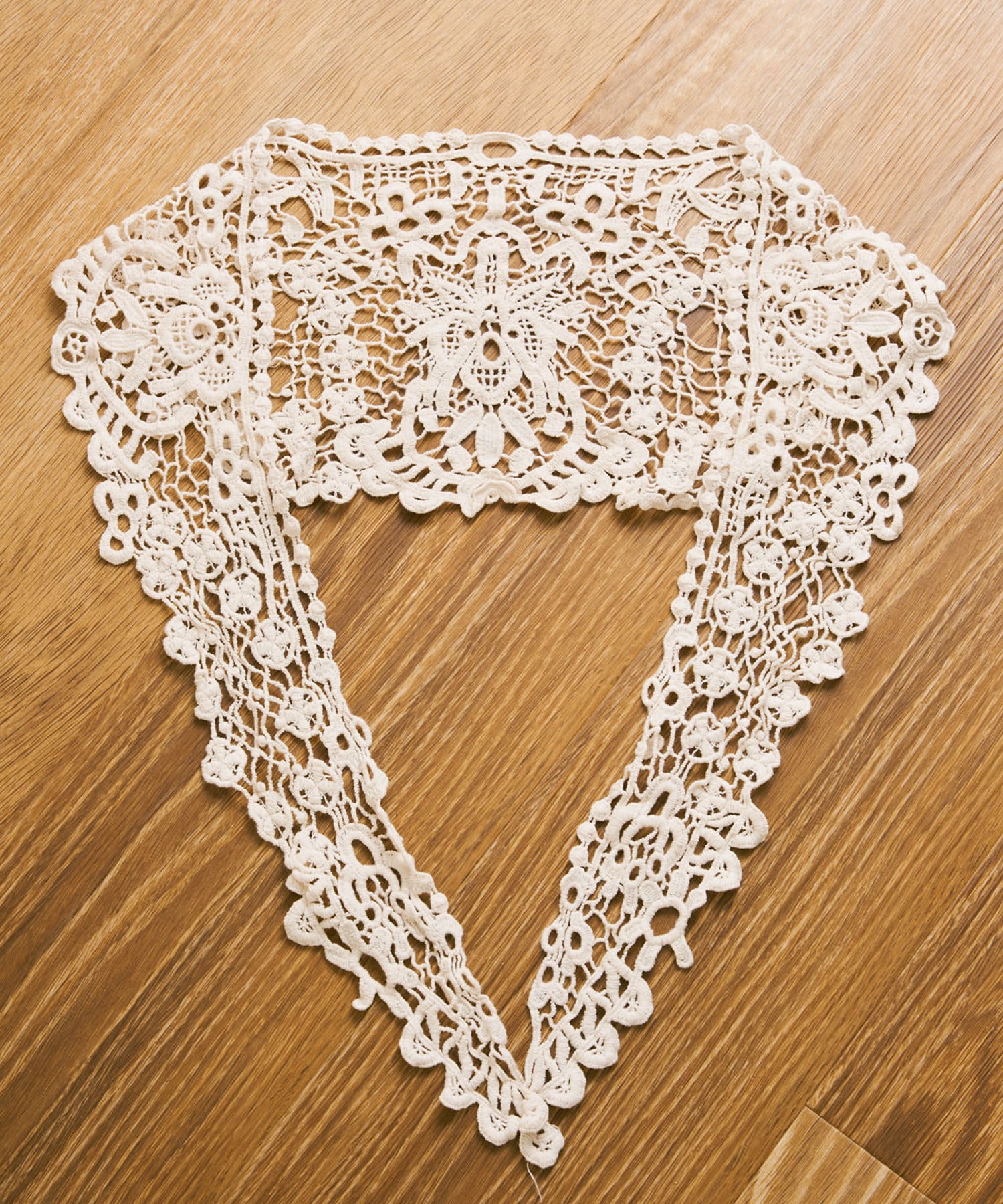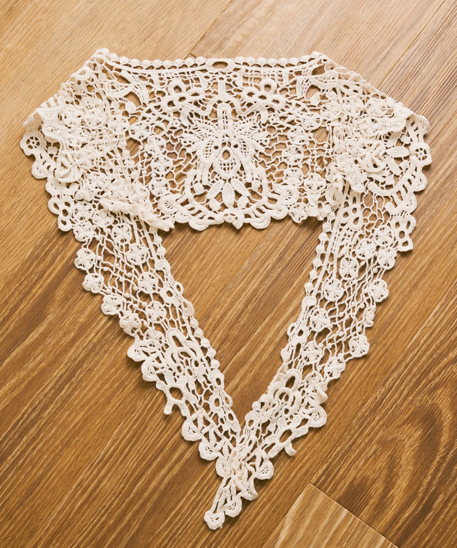 どこかスカーフのような繊細なレース襟は上品な雰囲気に!