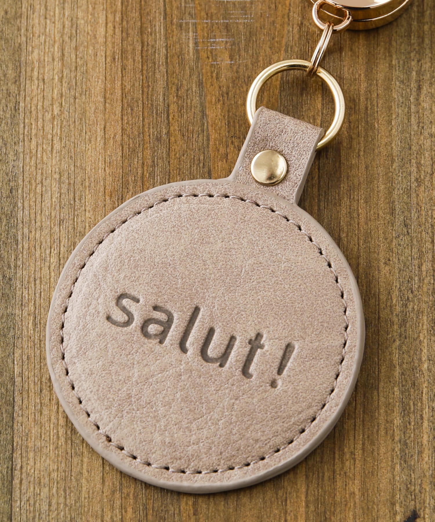 フラワー、salut!のワンポイントがかわいらしく、淡色がこなれ感を感じさせるオシャレアイテム。
