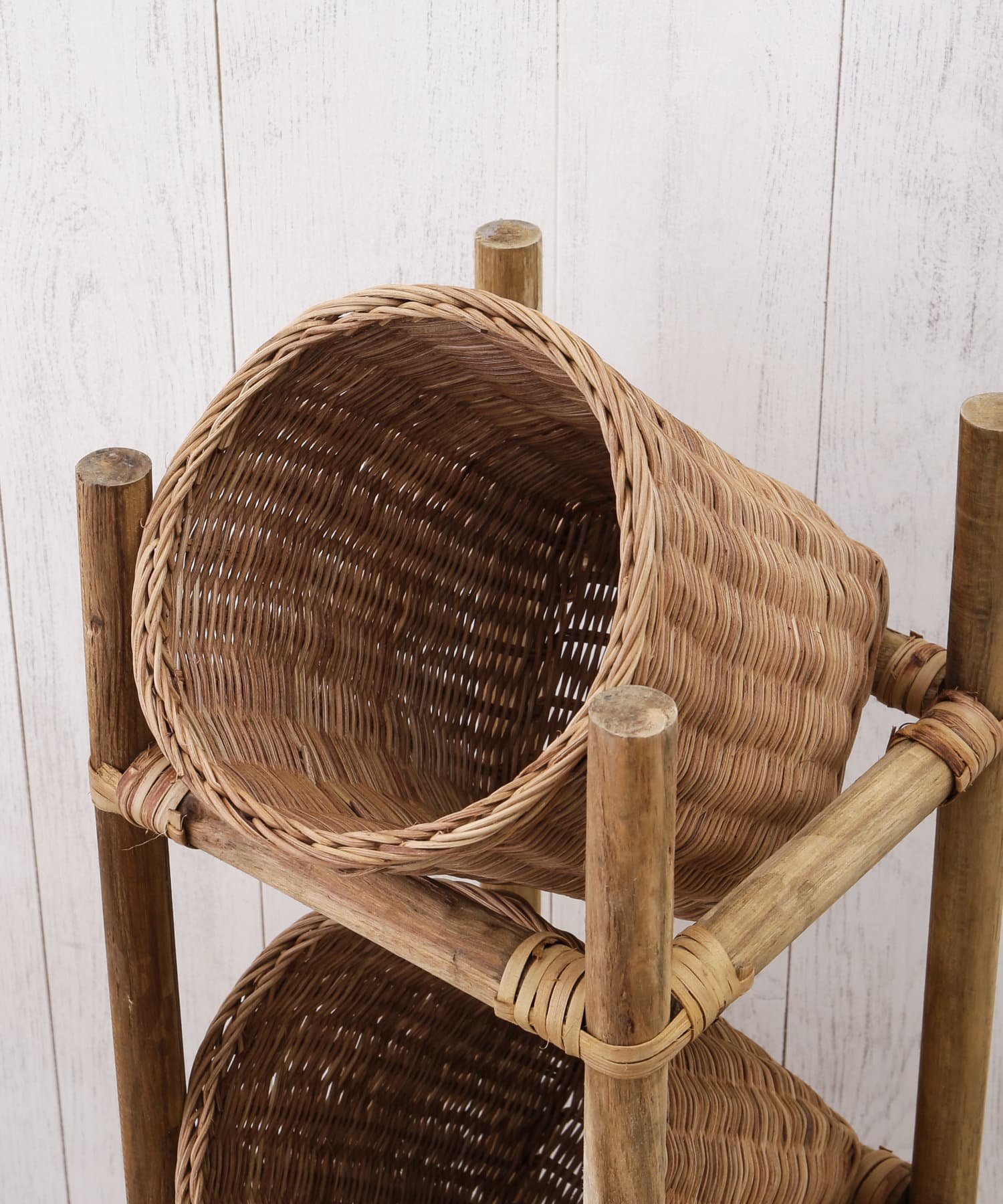 【花のある暮らし】ラタンバスケットラック3段