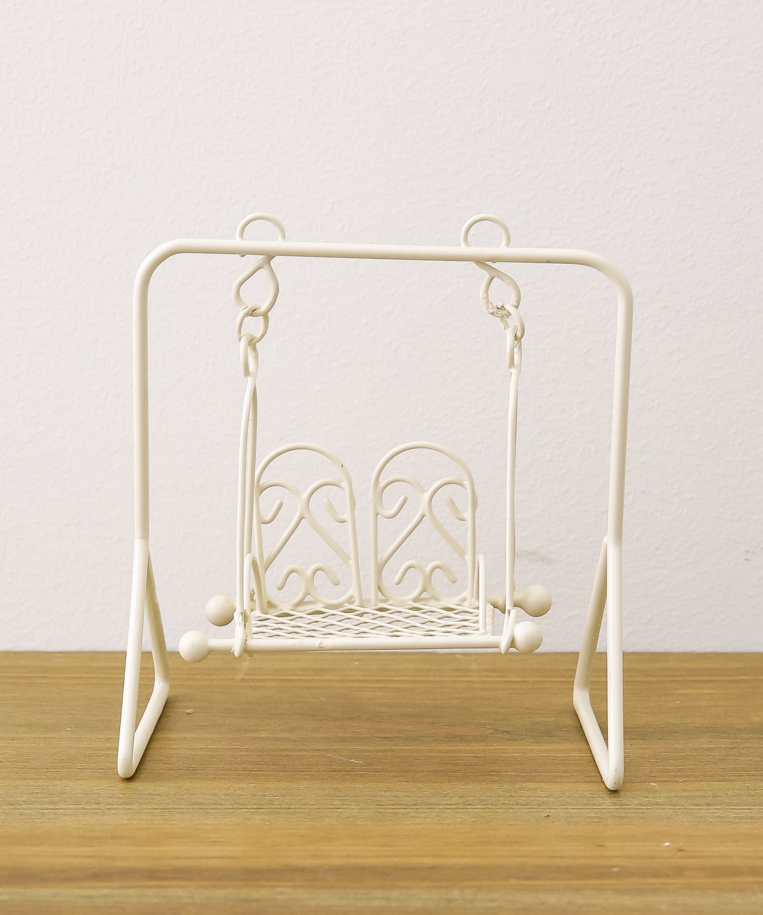 お庭に置いているようなホワイトワイヤーデザインのブランコのオブジェ。