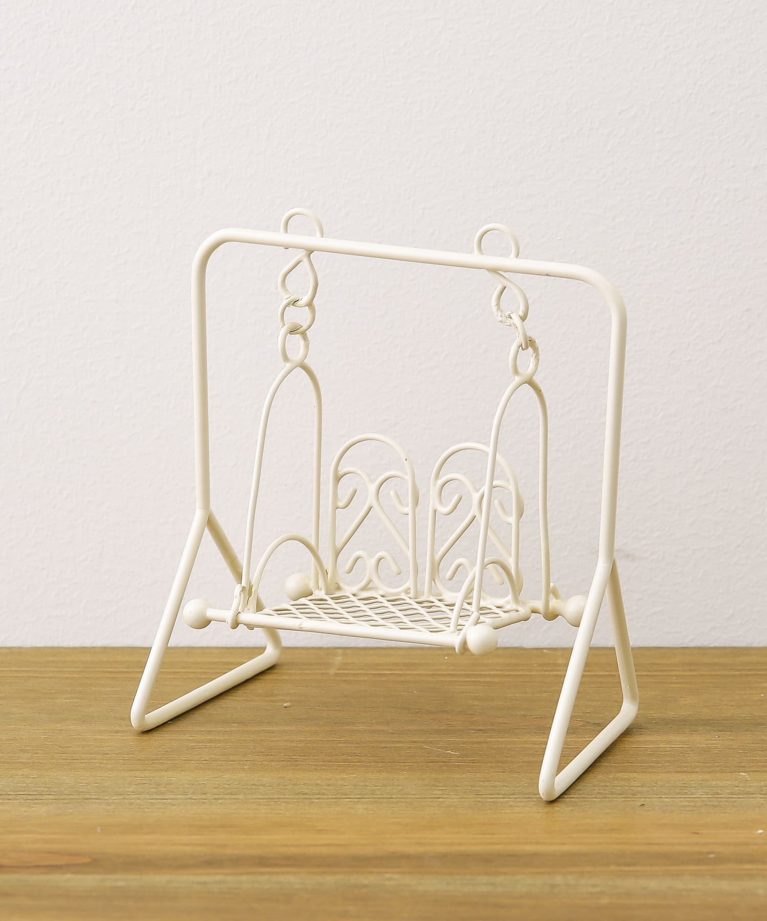 お庭に置いているようなホワイトワイヤーデザインのブランコのオブジェ。