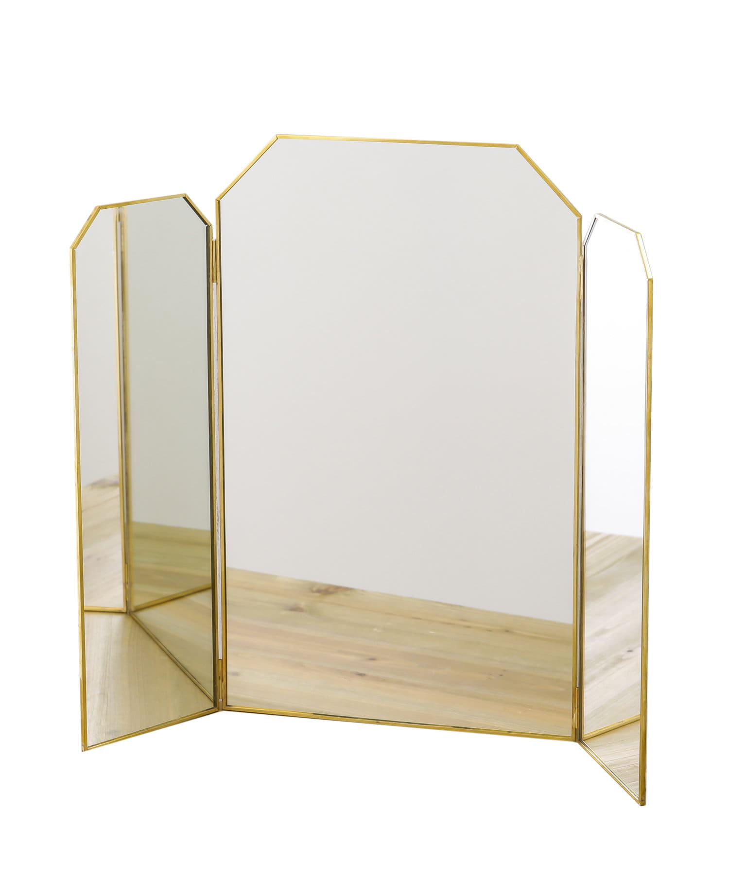 ゴールドの縁取りがオシャレな三面鏡。