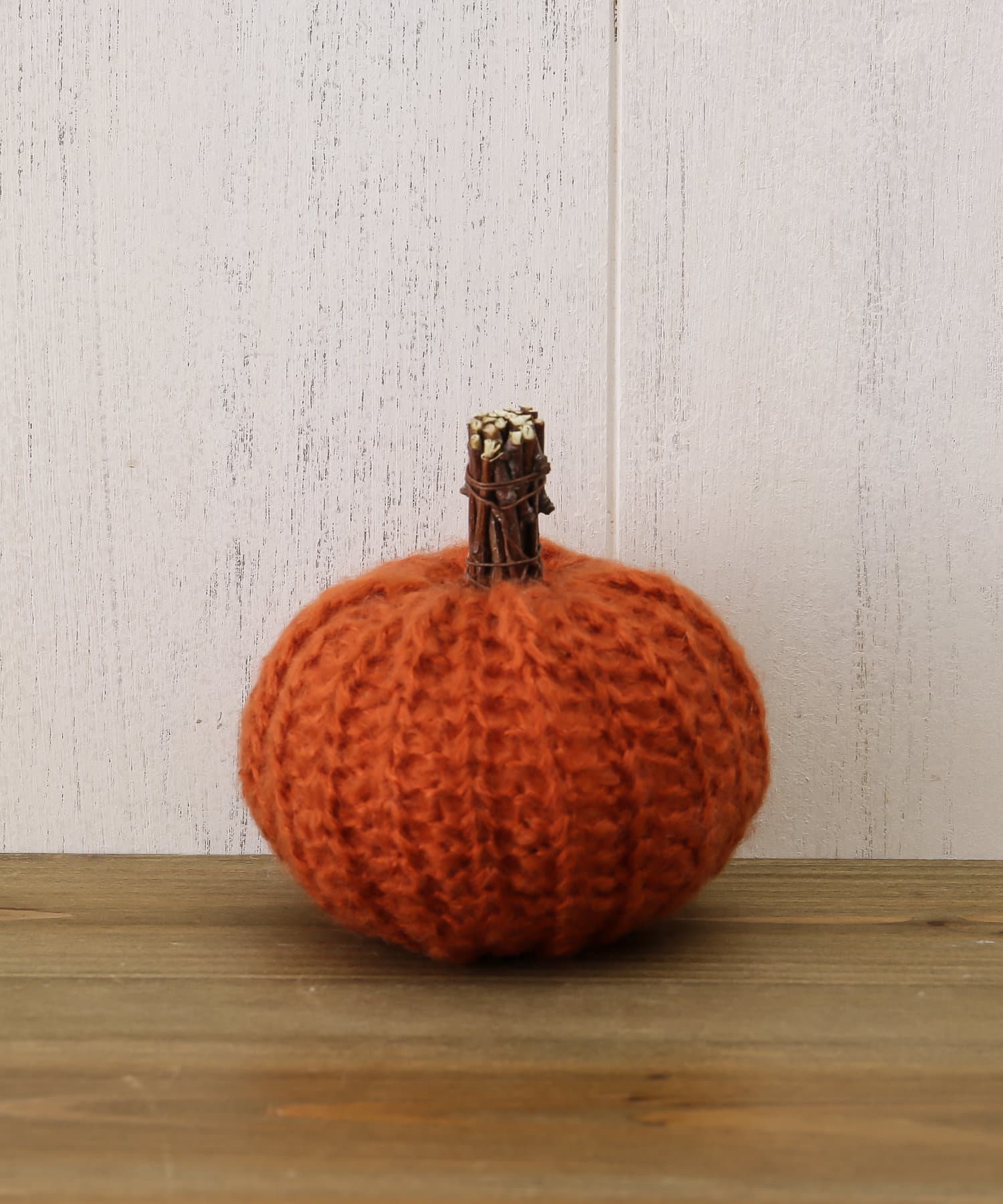ニット素材が温かみがあってほっこりするようなかぼちゃ。