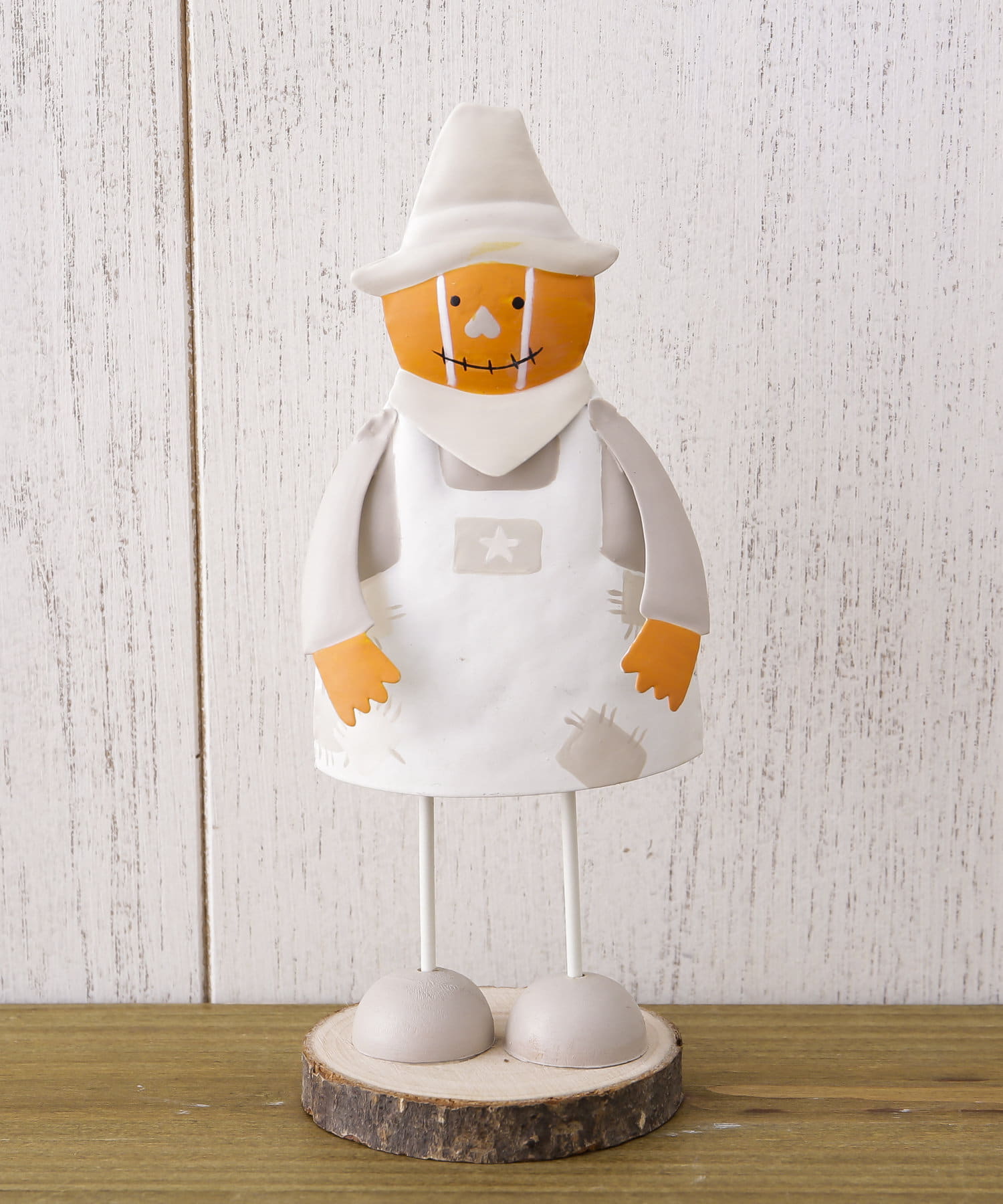 ハロウィンの人気者。かかしのジャックオーランタンの切り株オブジェ。