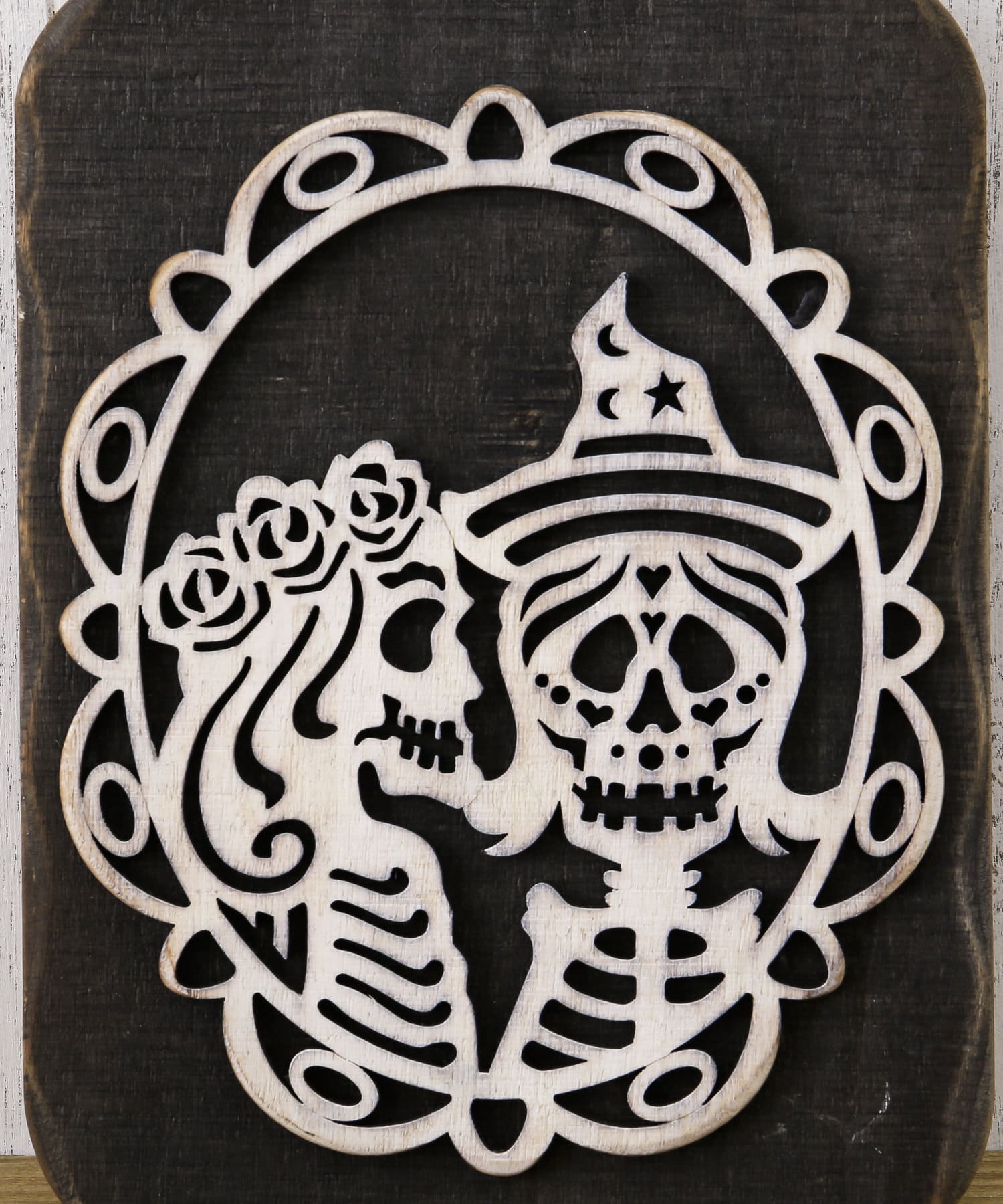 シャビーな塗装とスカルのイラストのホワイトの淡色の組み合わせがオシャレ。