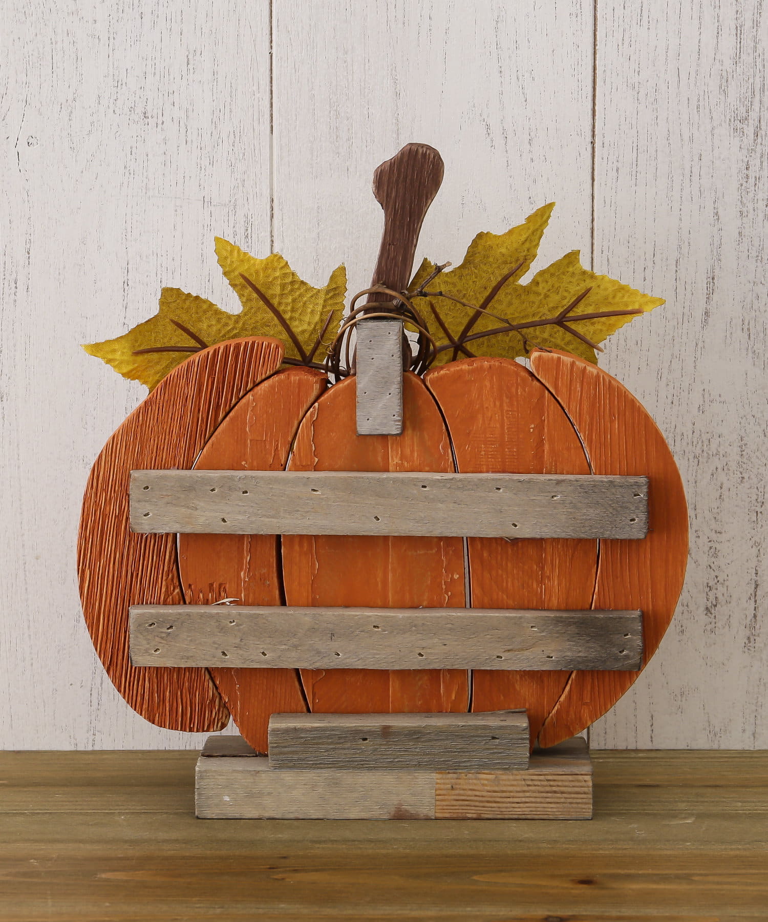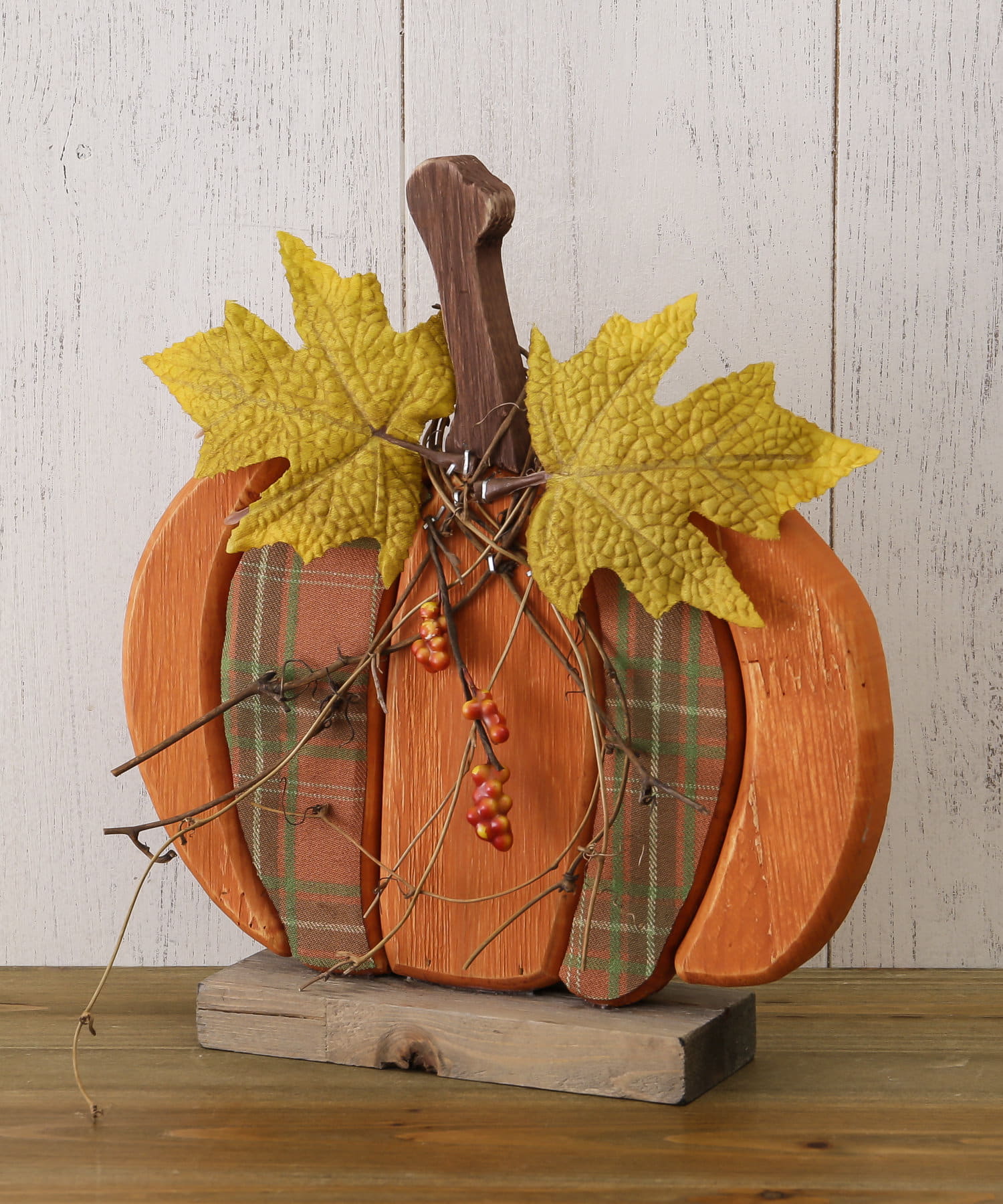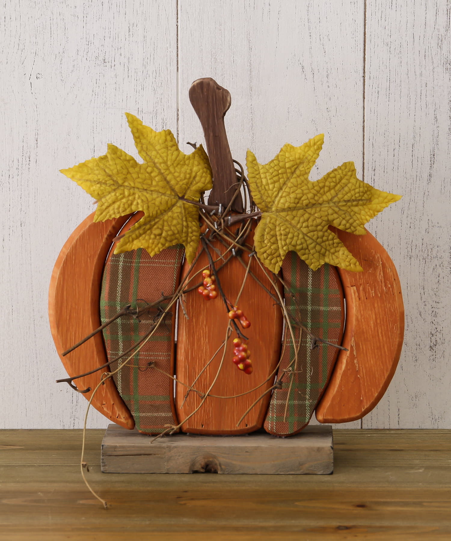 ウッド素材がかわいらしいかぼちゃのスタンドオブジェ。