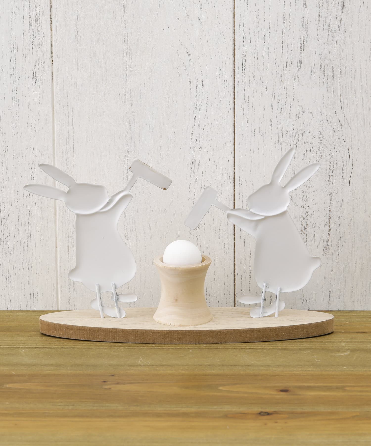 お月見にぴったりのペアでお餅をついているうさぎのオブジェ。