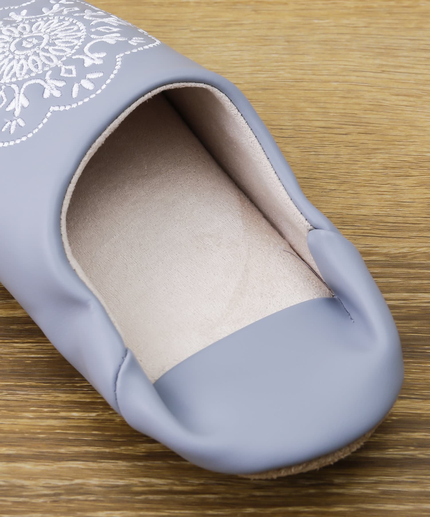かかと部分をつぶしたシルエットと刺繍がカワイイバブーシュのスリッパ。