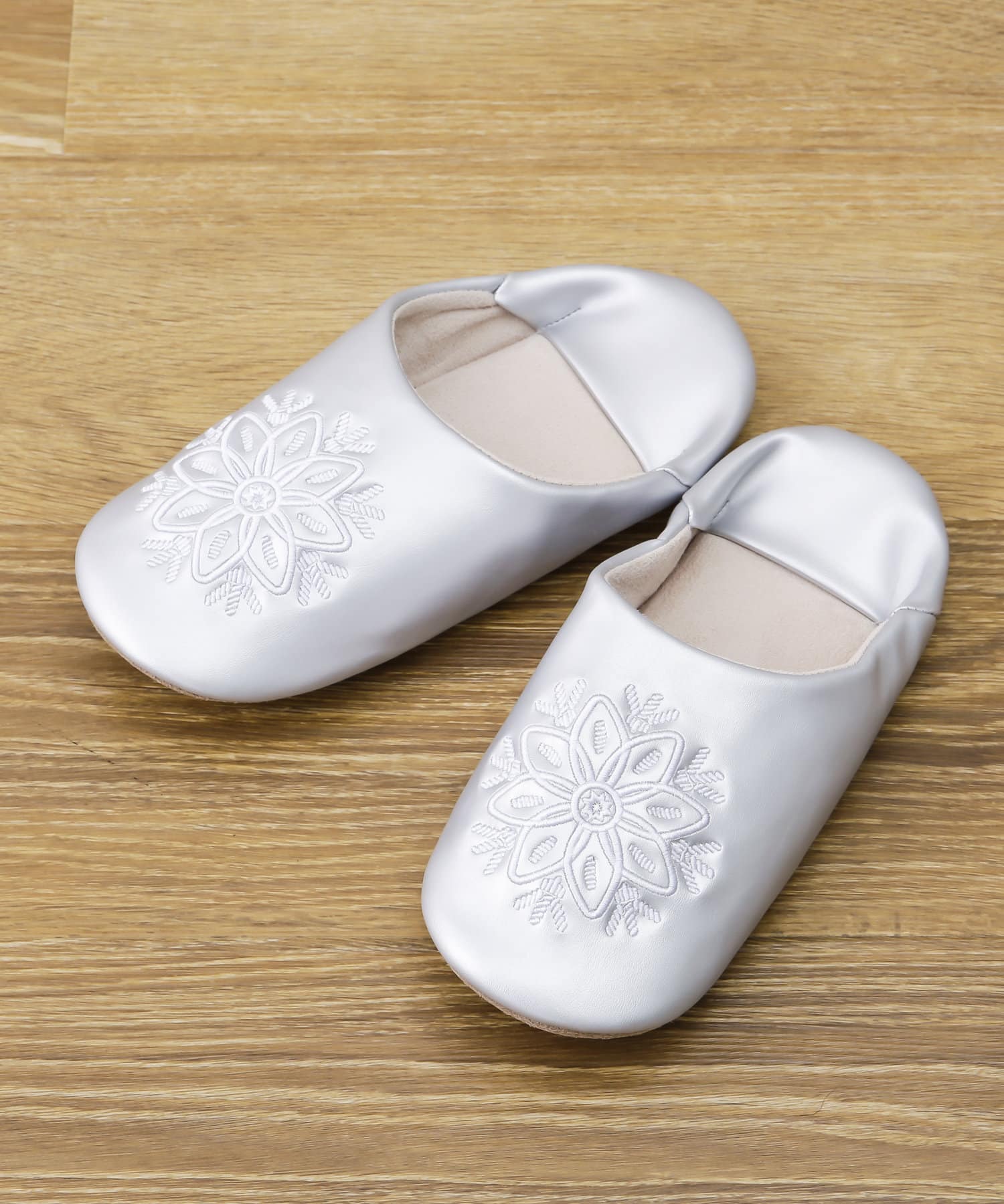 かかと部分をつぶしたシルエットと刺繍がカワイイバブーシュのスリッパ。