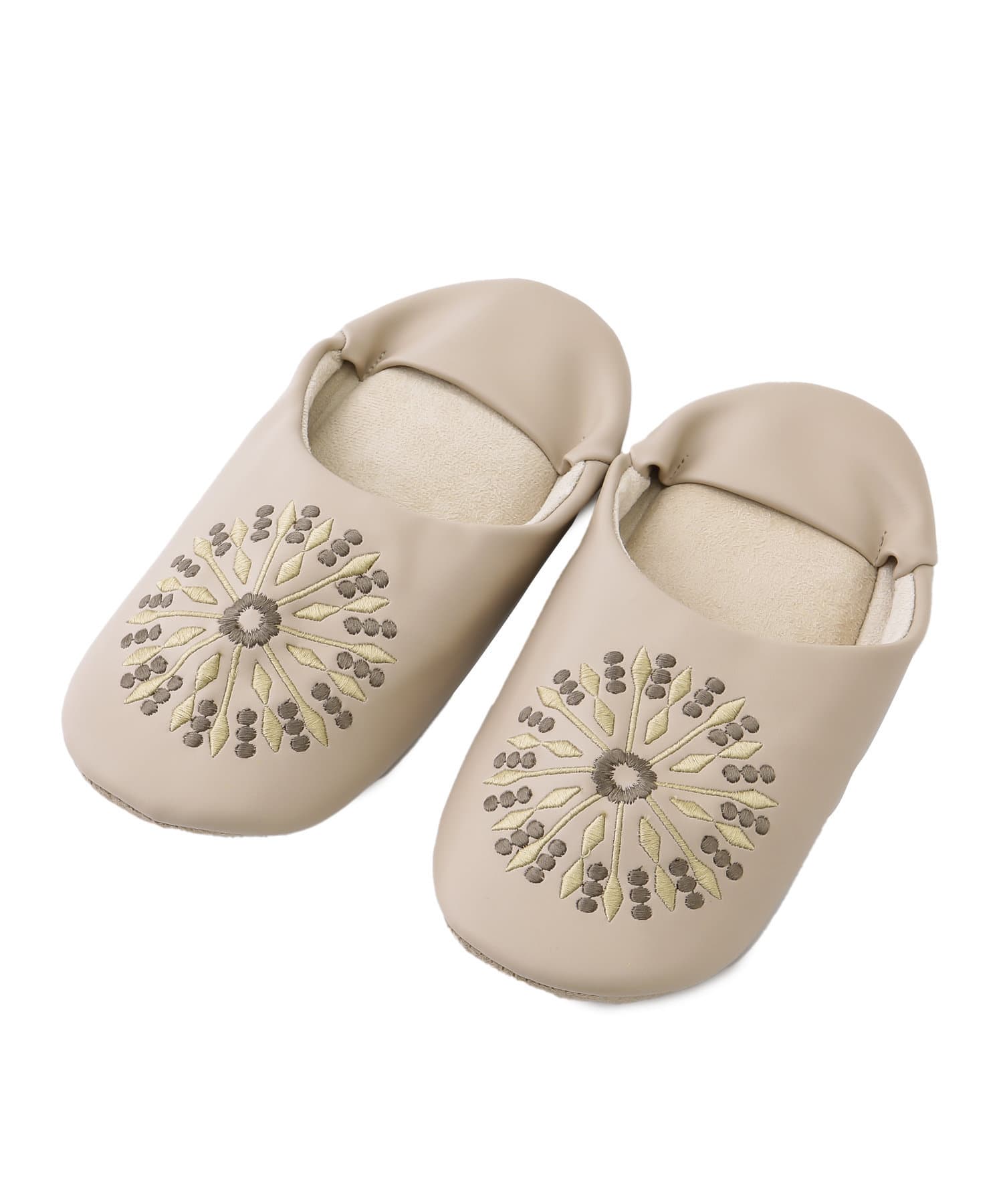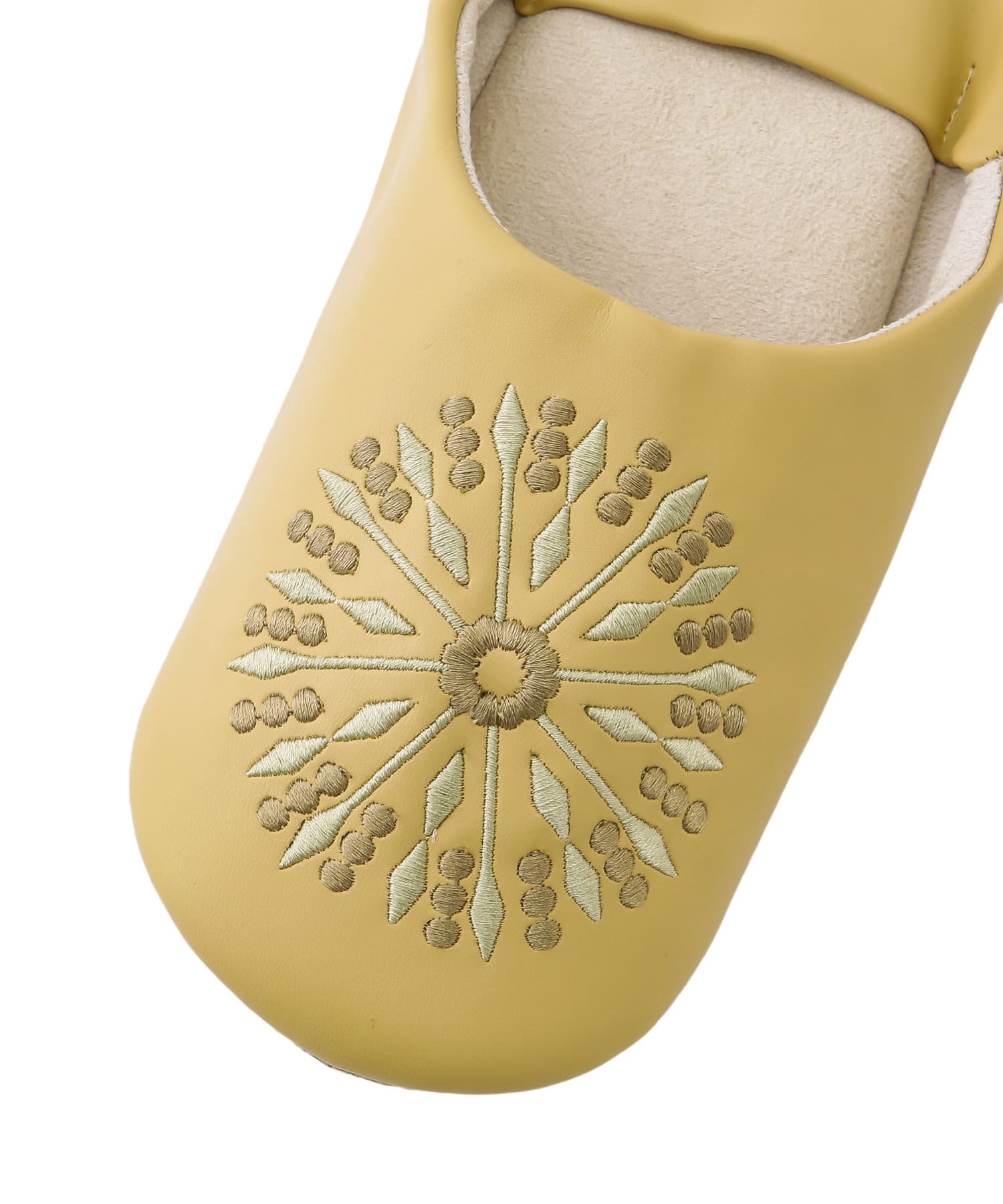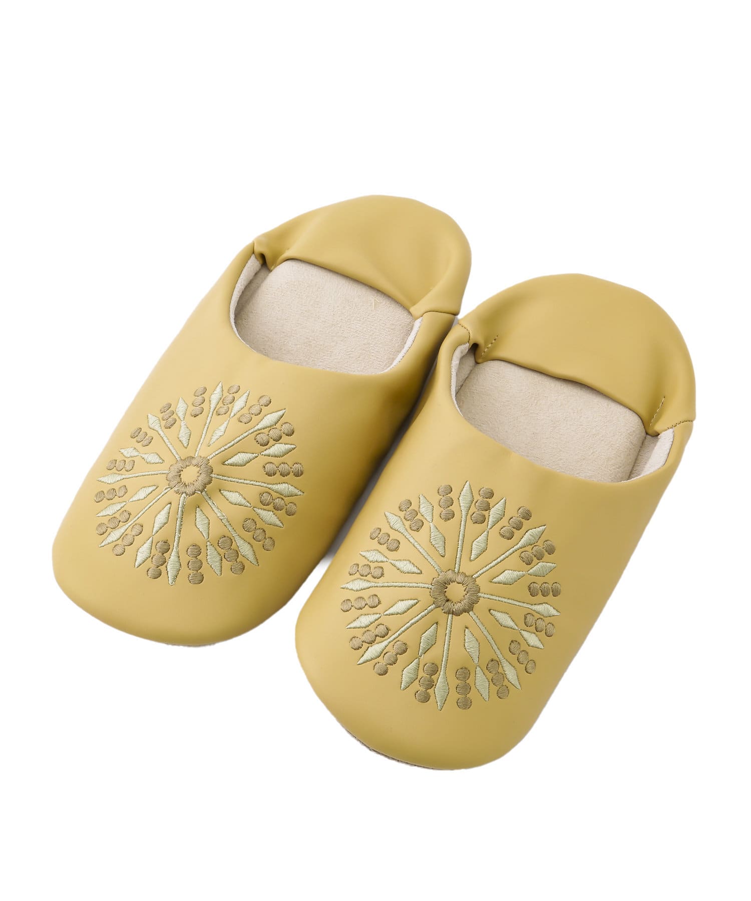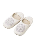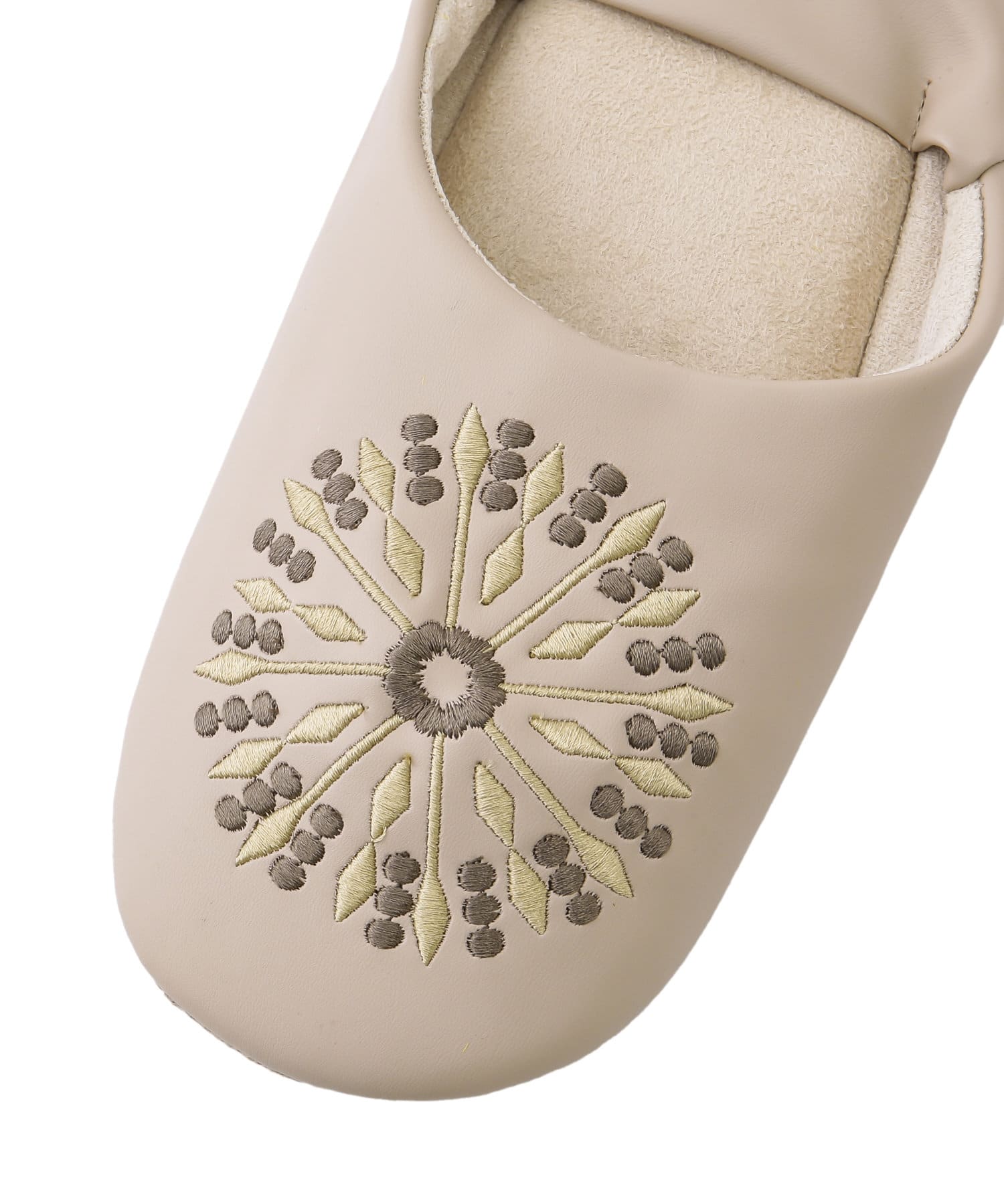 かかと部分をつぶしたシルエットと刺繍がカワイイバブーシュのスリッパ。
