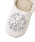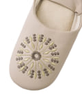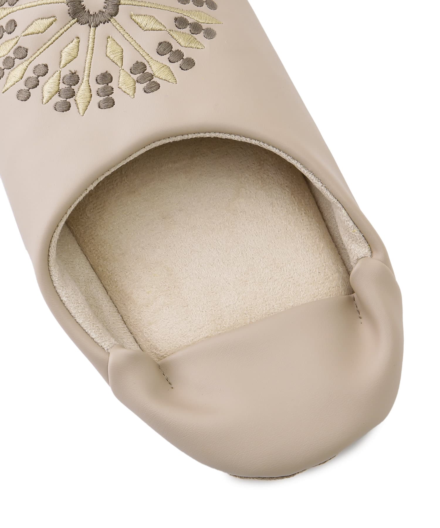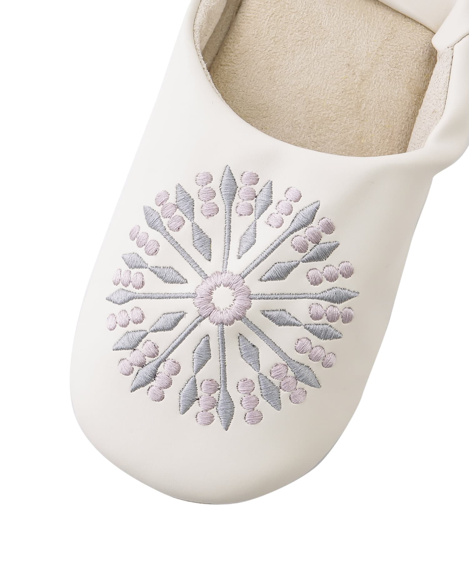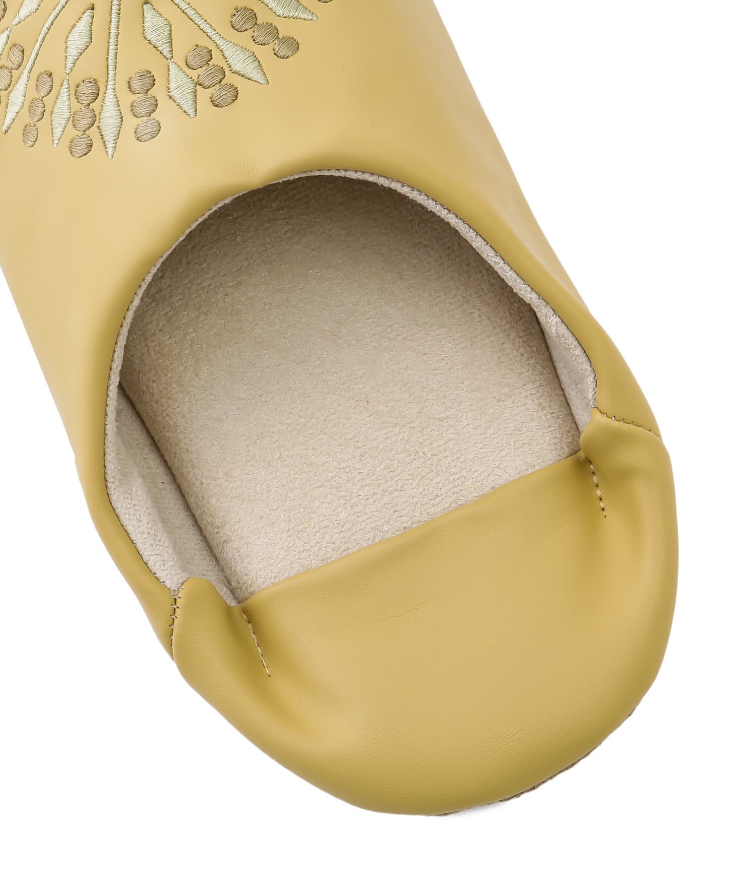 かかと部分をつぶしたシルエットと刺繍がカワイイバブーシュのスリッパ。