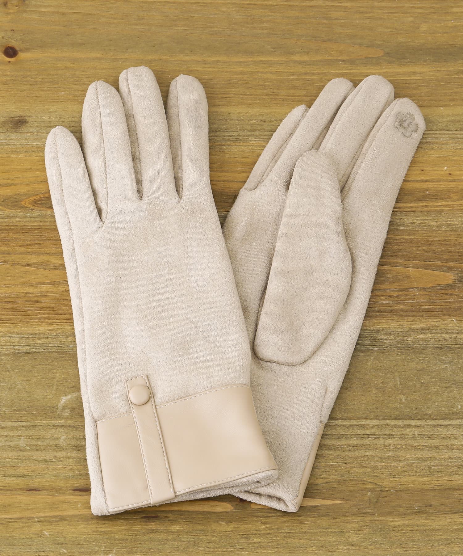 スマホ操作対応の親指と人差し指の先の導電糸をフラワー上の刺繍にあしらったちょっとオシャレなアイテムです。