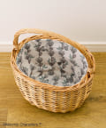 可愛すぎない感じの柄で、とても落ち着いて見えます。バスケットのサイズ感も、大きすぎずちょうど良いです。