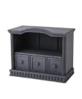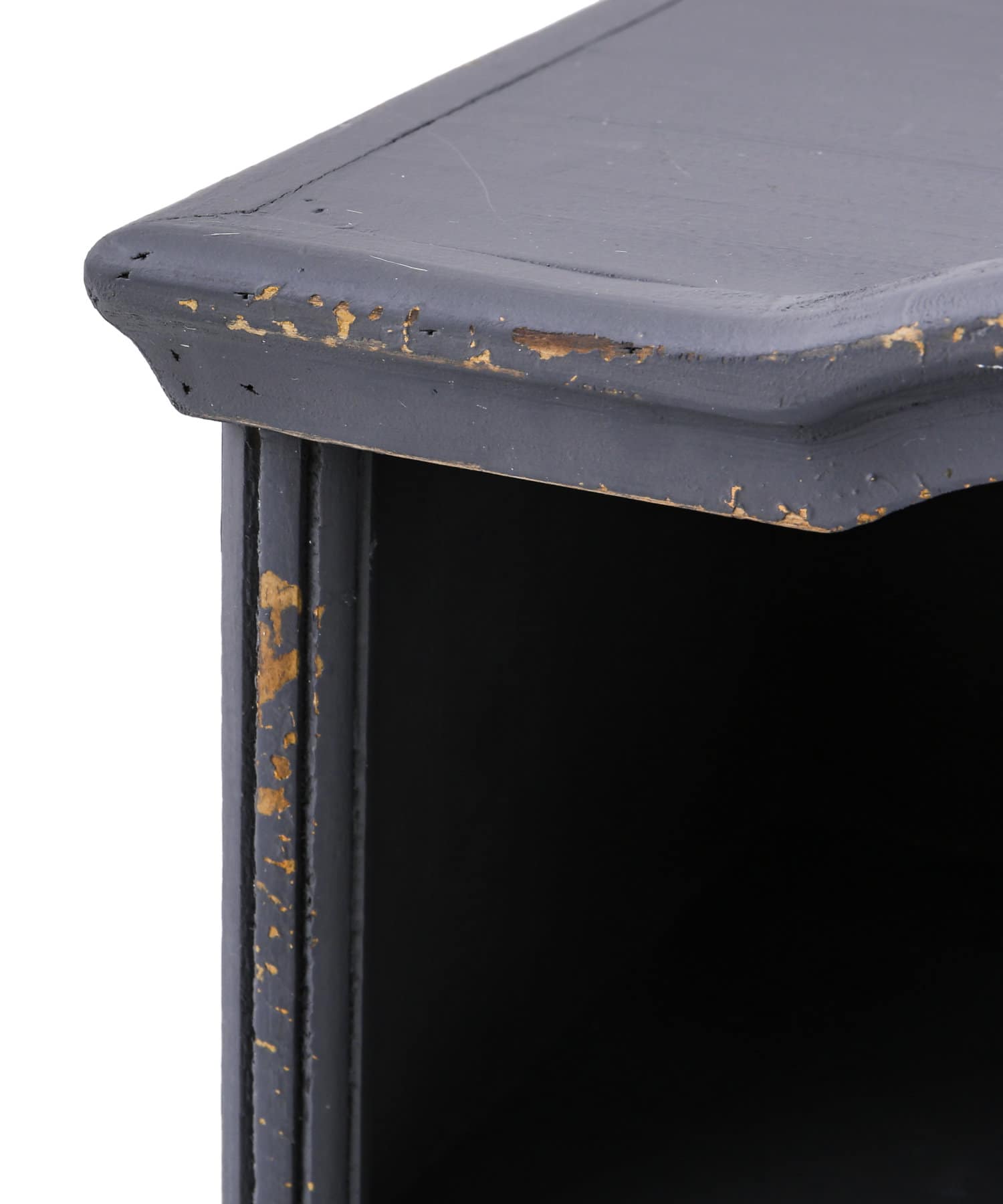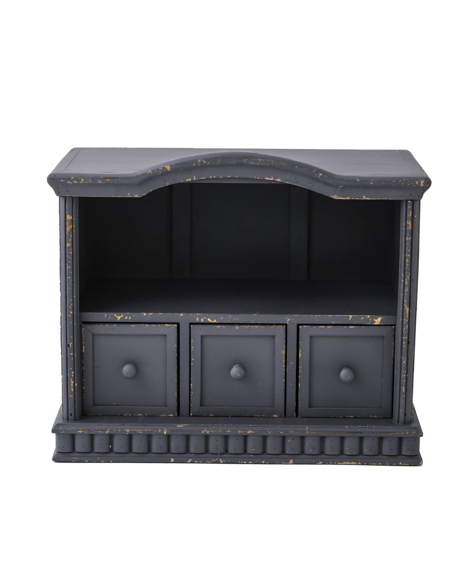 ペールトーンなライトグレーがかわいらしい引き出し付きのシェルフ。