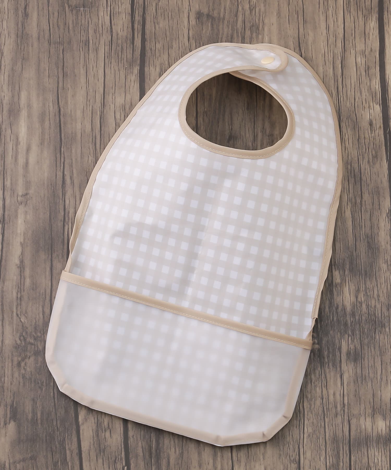 ・エプロンのポケットは食べこぼし受けとしてご使用ください。ポケットに食品やその他のものを入れないでください。重さで首に負担がかかります。