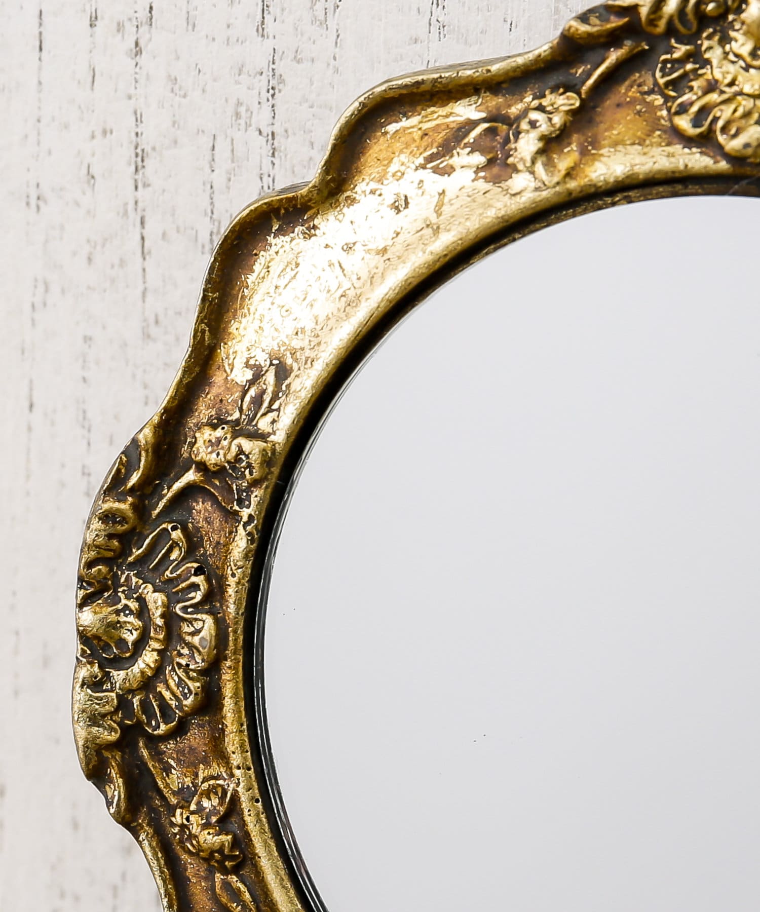 外国の洋館にありそうな、アンティーク風の手鏡です。一目惚れして購入しました。家でちょっと鏡みたいなって時に、ジャストなサイズです。