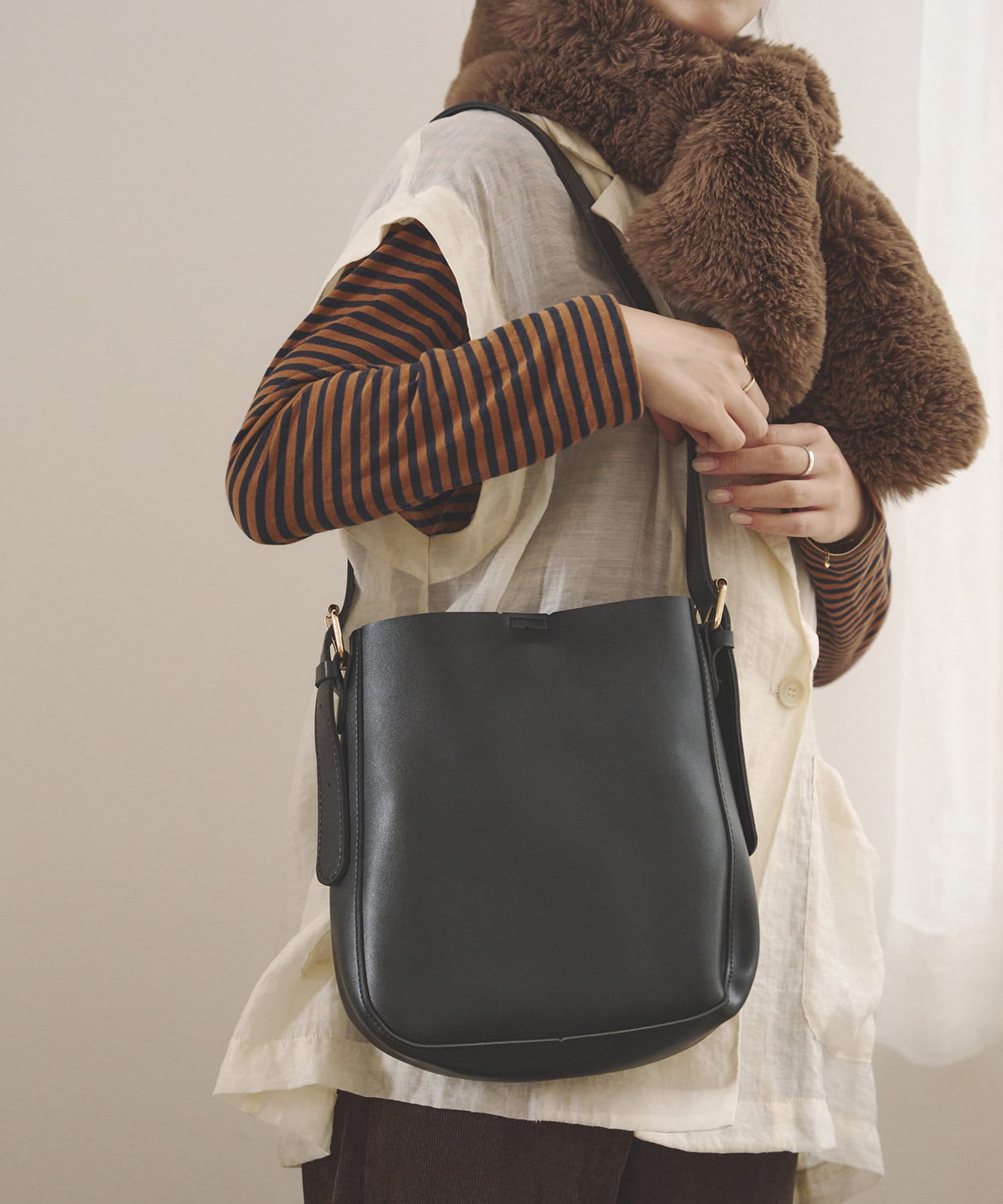 スリムでスッキリしたシルエットでもお出かけに必要なものがしっかり入るサイズ感。