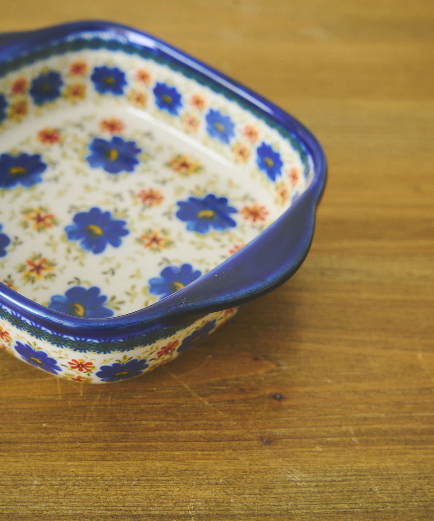 色鮮やかなポーリッシュポタリー風のスクエアトレー。