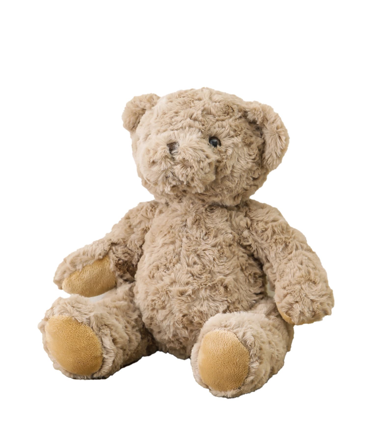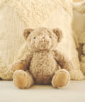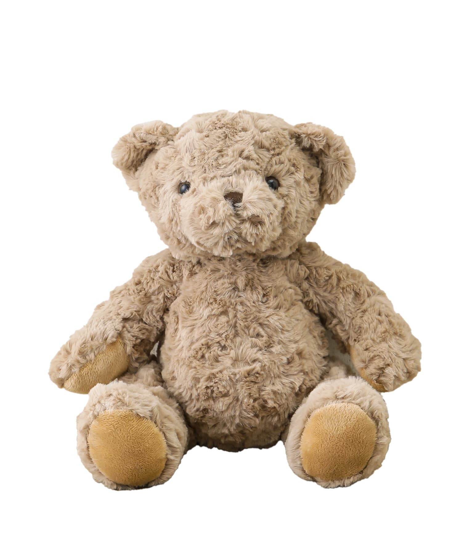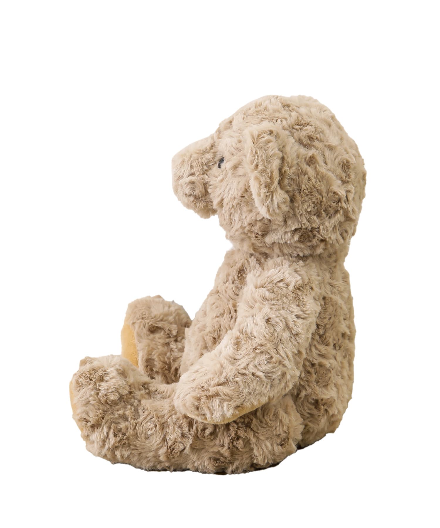 ●くるくる巻き毛の毛皮が特徴的なお座りしたくまのぬいぐるみ。