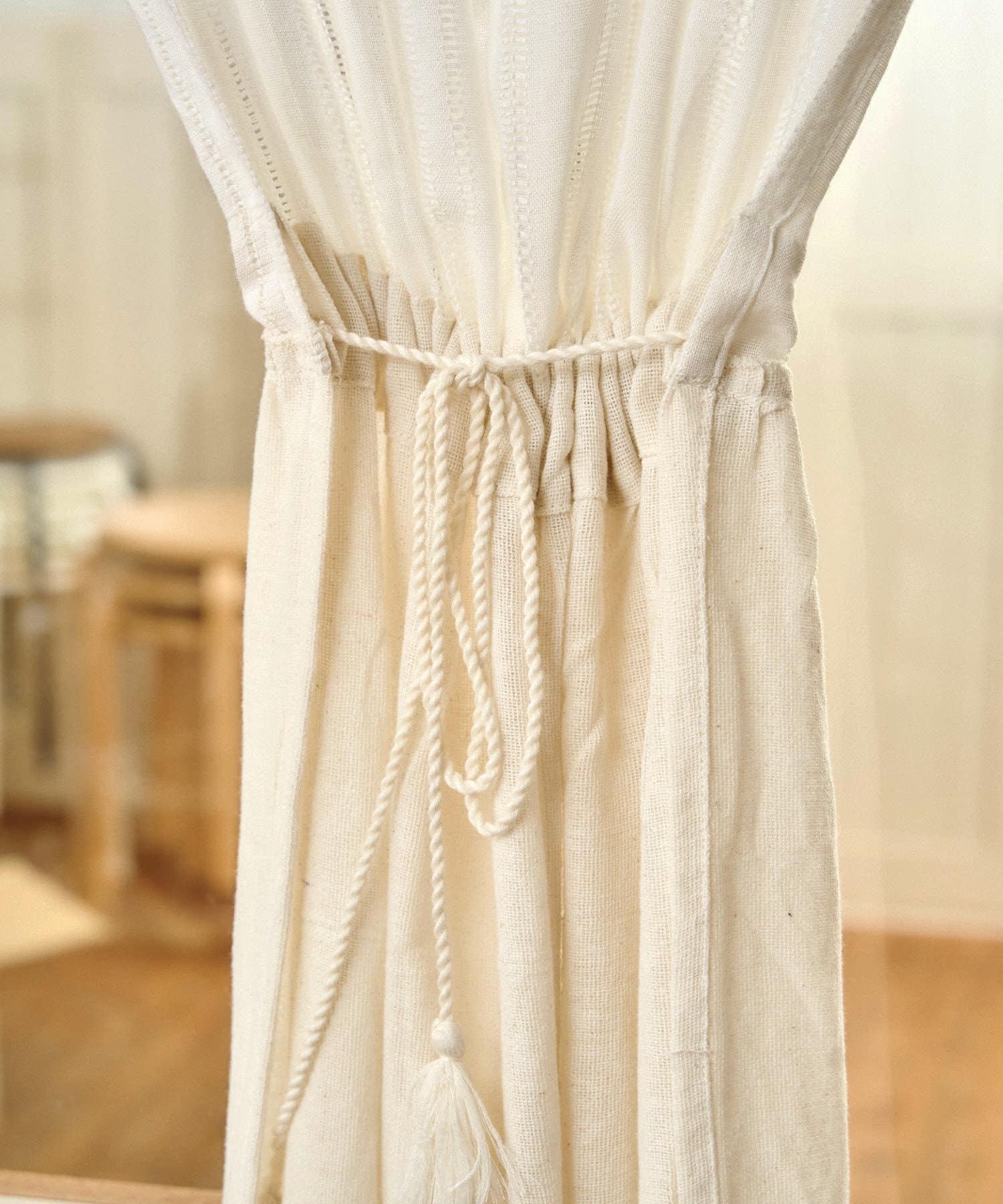 紐付きで、真ん中を絞って使える2wayカーテン。
