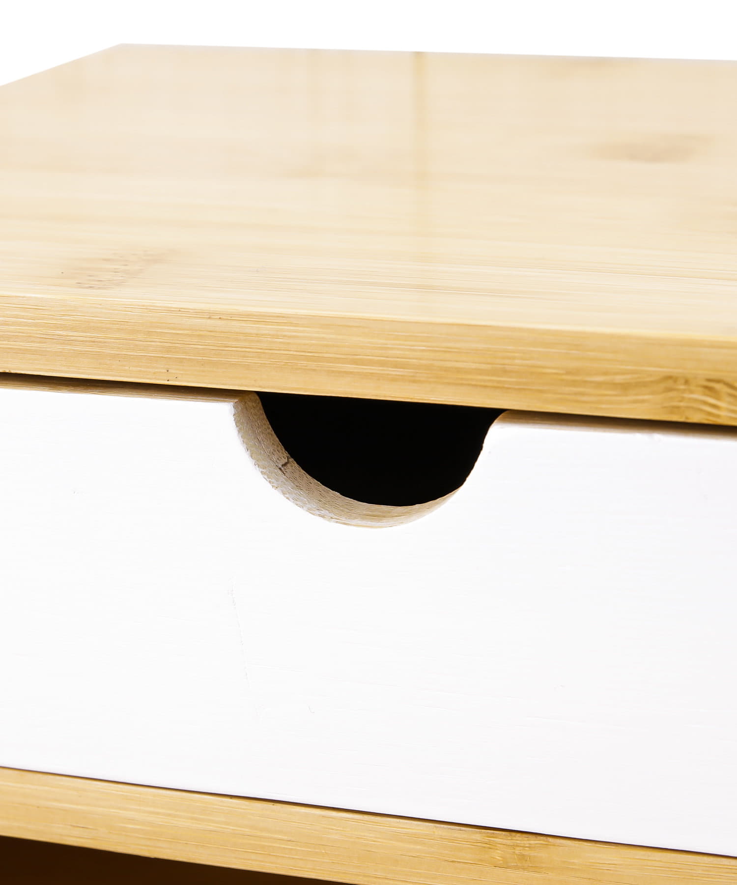 天然素材のナチュラル感と引き出しのホワイトがオシャレなデザイン。