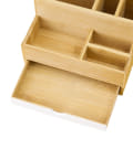 天然素材のナチュラル感と引き出しのホワイトがオシャレなデザイン。