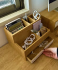 ステーショナリーをはじめとした小物が沢山入るマルチな小物収納ボックス。