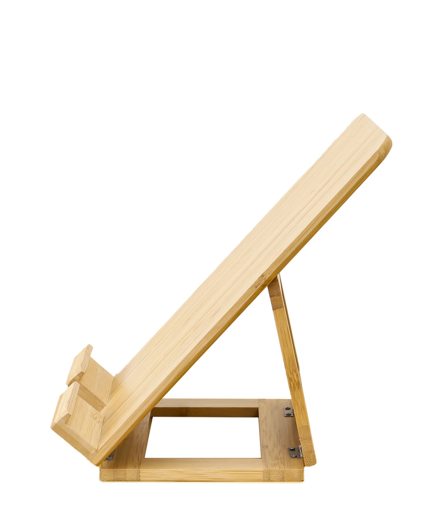 ナチュラルで温かみのある天然素材の質感が魅力的なタブレットスタンド。