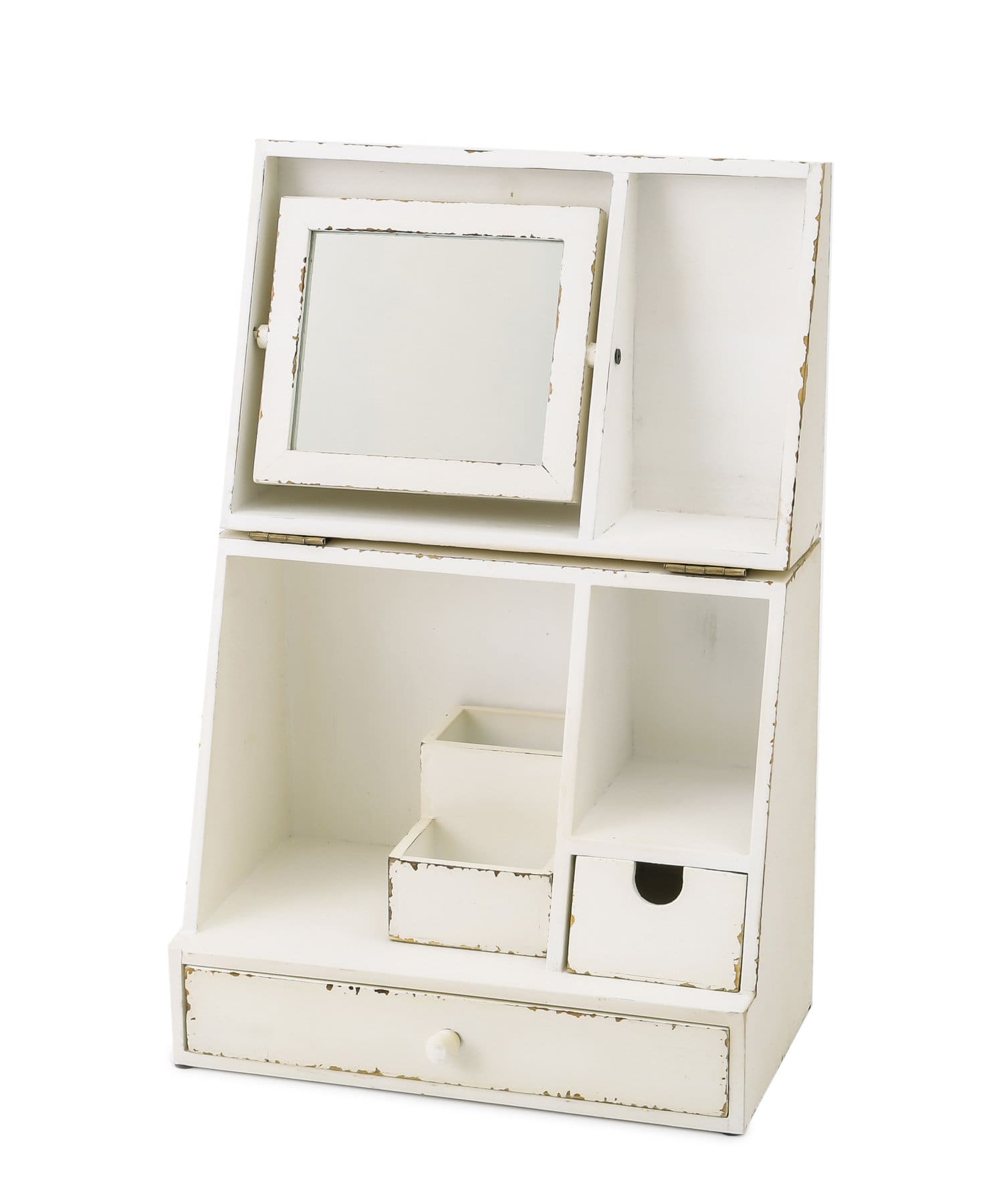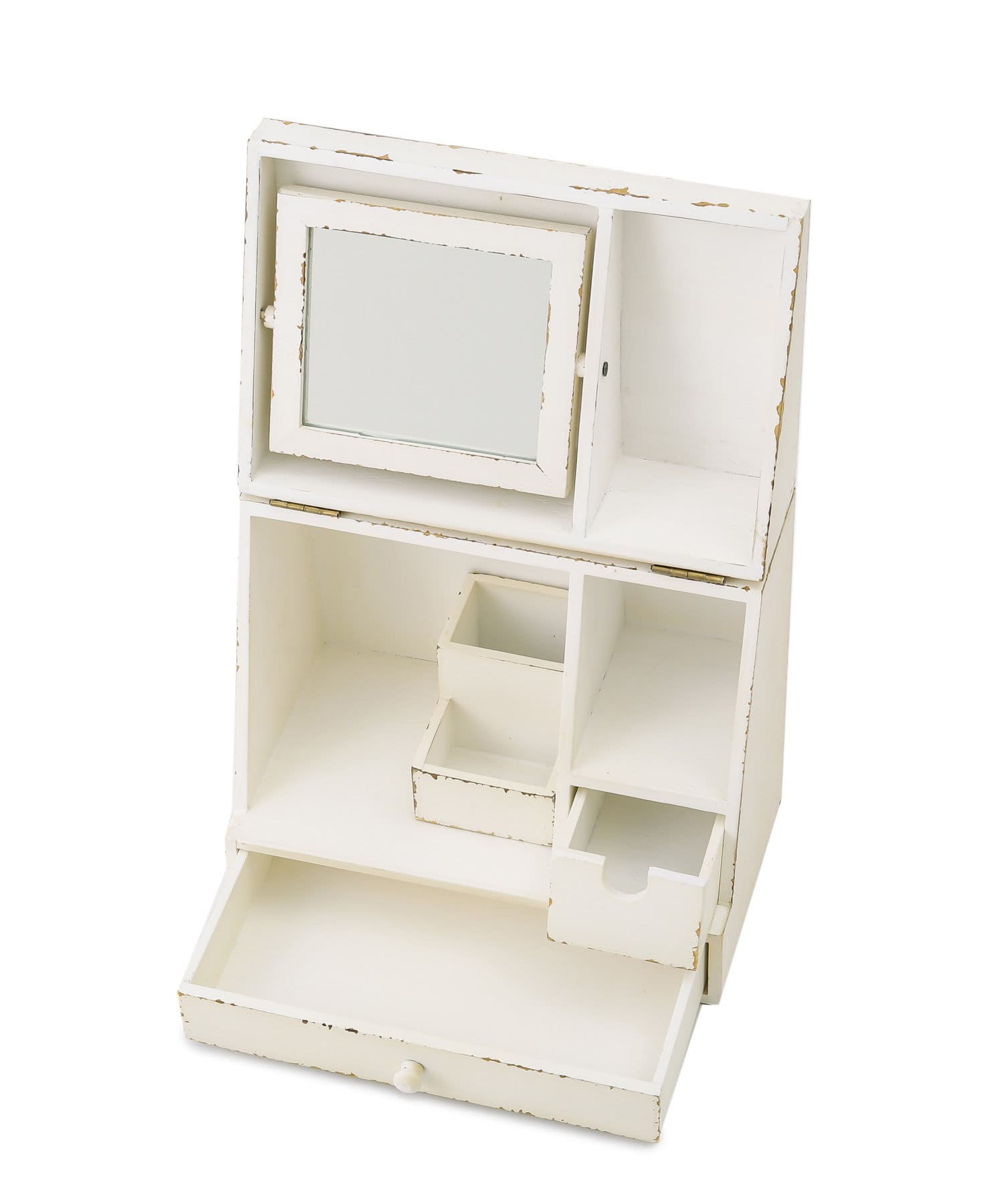 引き出しや、ブラシ立て、ミラーもついているので小さなドレッサーボックスとして活用できます。