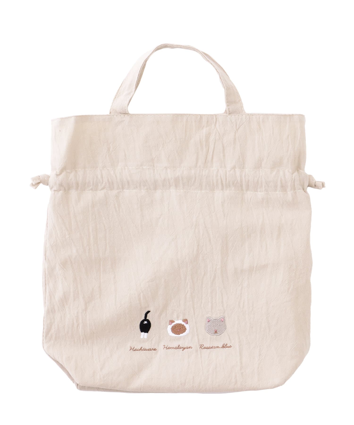猫の刺繡がカワイイ薄手の巾着バッグ。