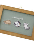深みのあるグリーンカラーに眠る猫の刺繍がカワイイパネル。