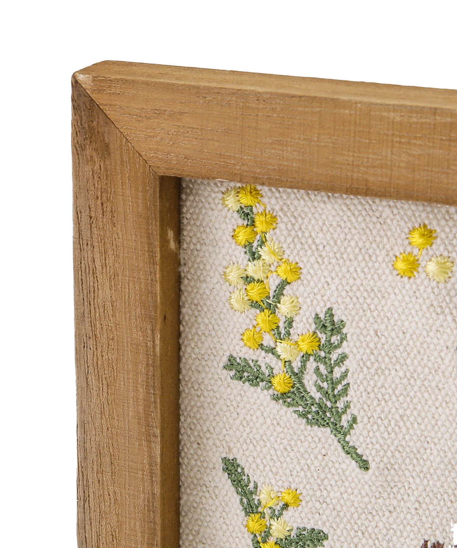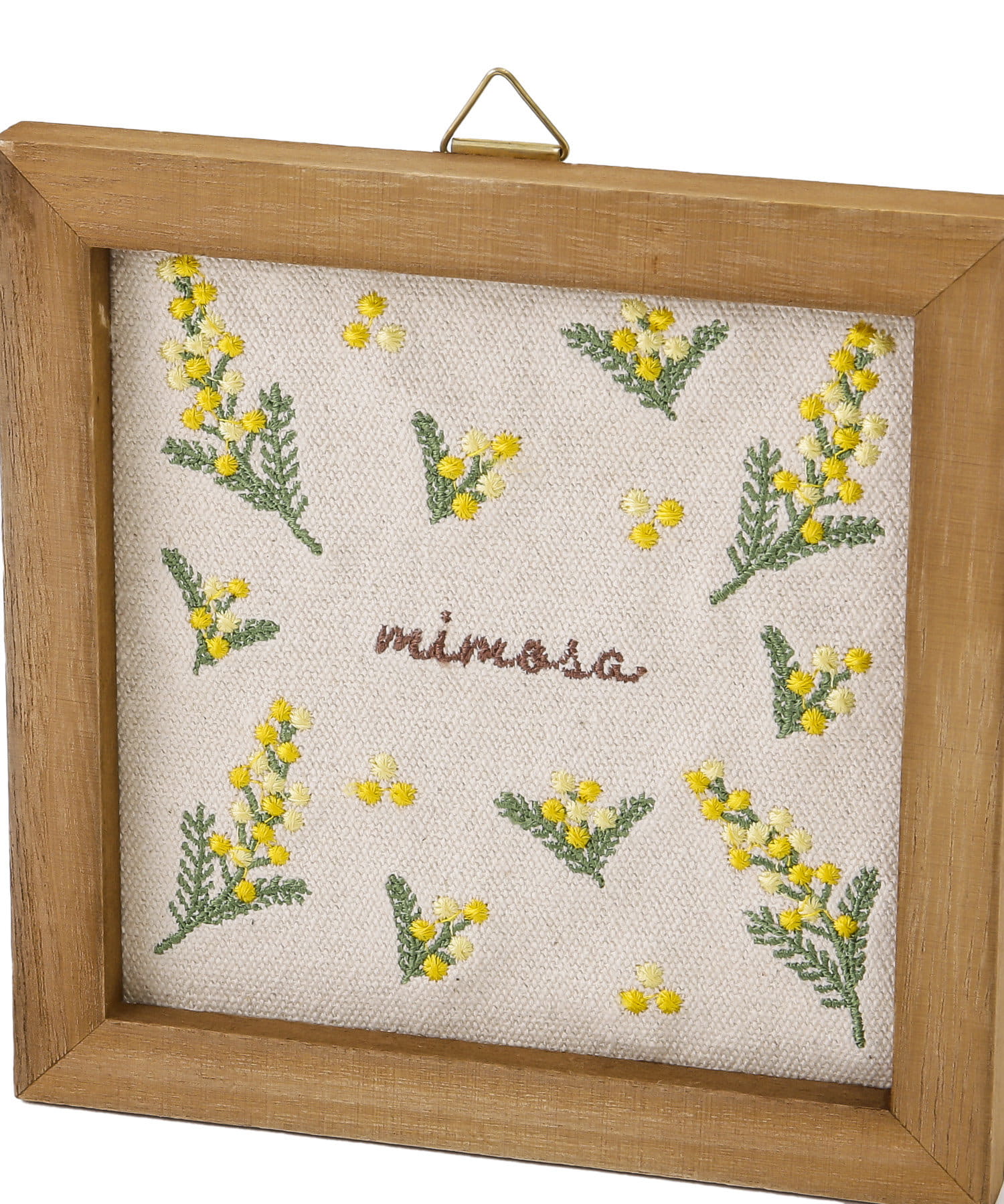 小さくかわいらしいミモザのパターン柄刺繡パネル。