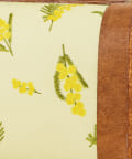落ち着いたアンティークブラウンと、ホワイト地に散りばめられた黄色いミモザがバランスと相性が◎なアイテムです。