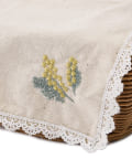 ●ミモザの刺繍が入ったカバー布はフチのフリルがこだわりポイント!