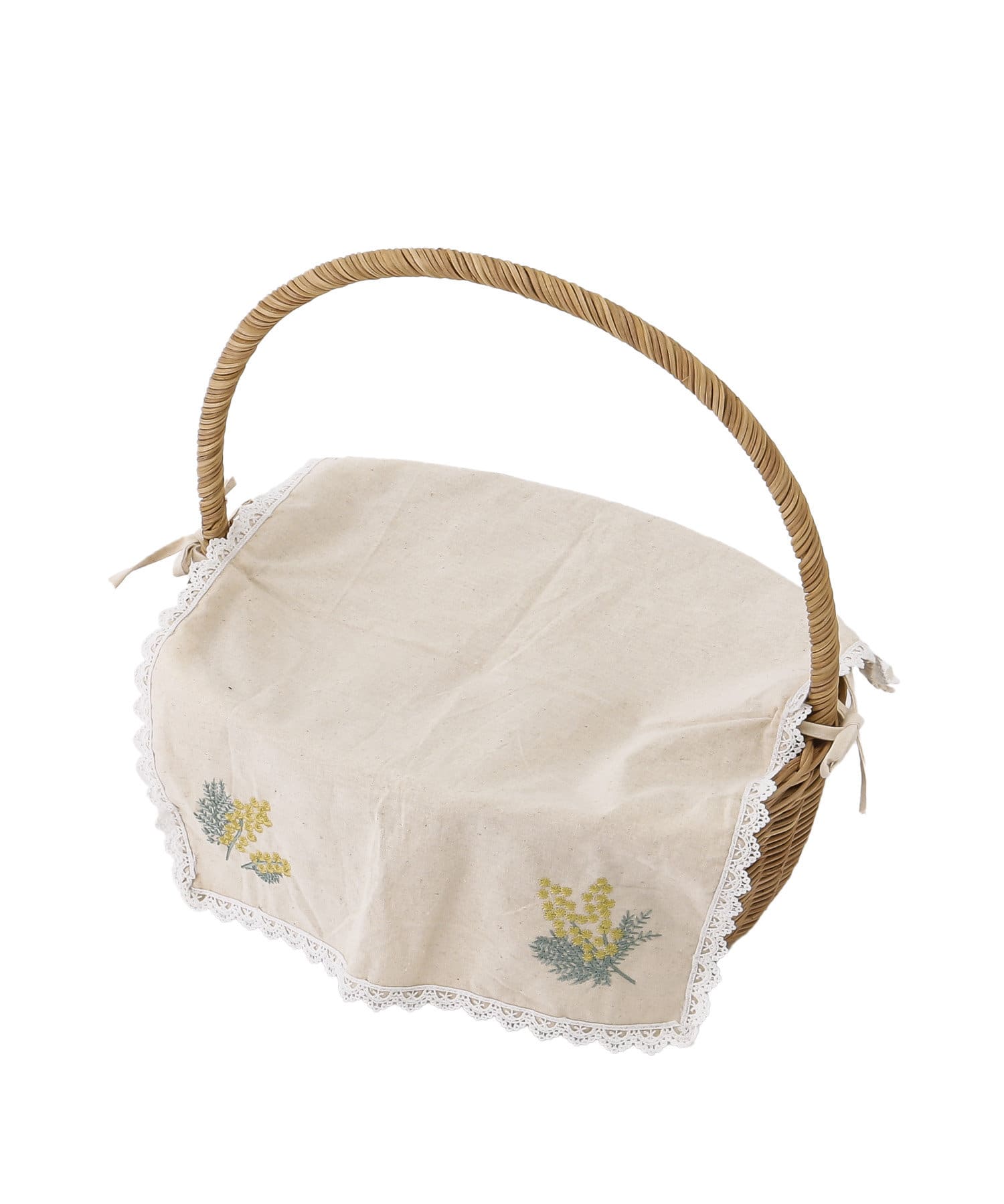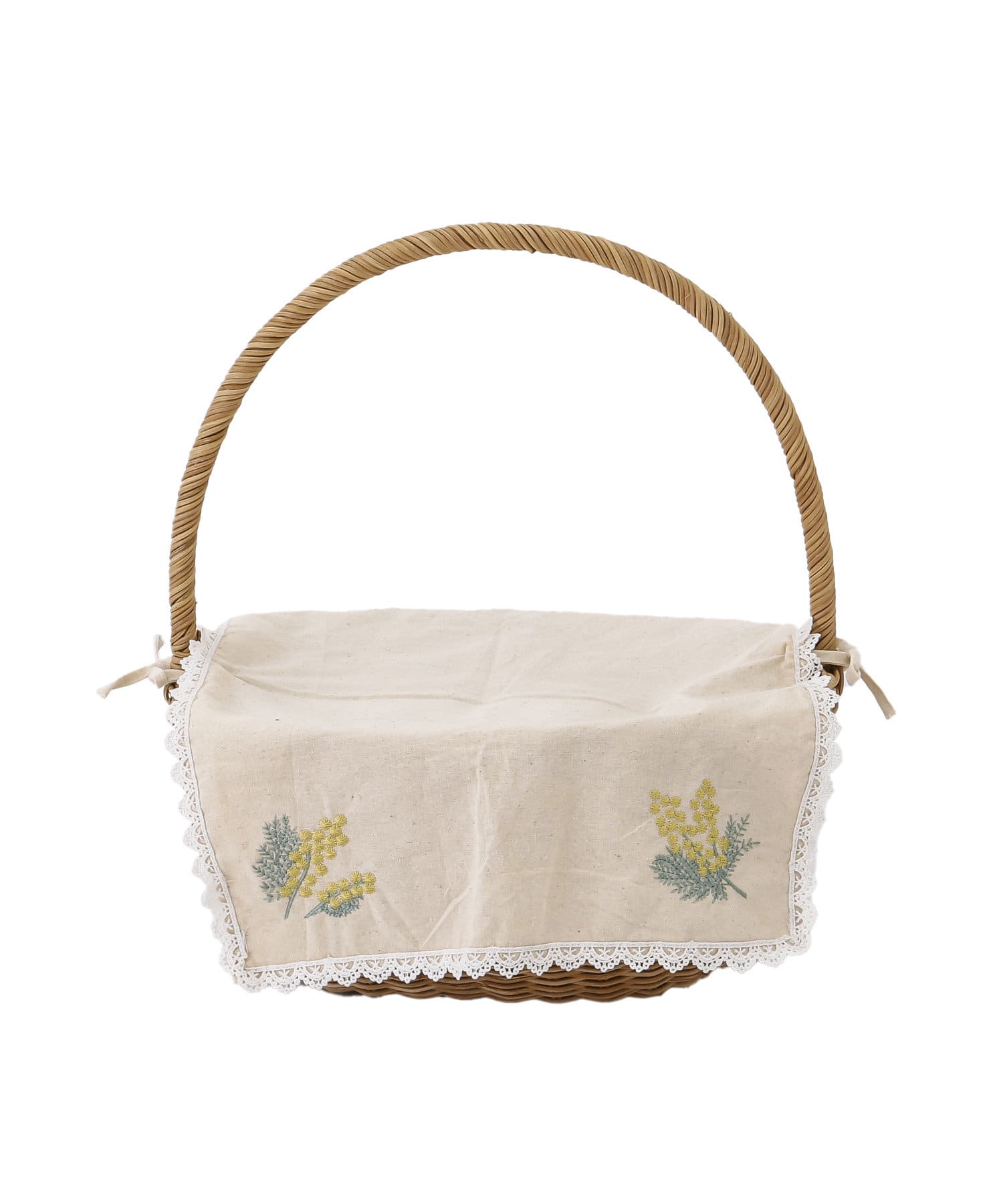 ■mimosa刺繍カバー付きラタンミニバスケット