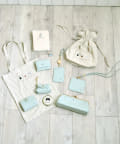 淡いブルーグレーカラーと猫のワンポイント刺繍がオシャレ♪