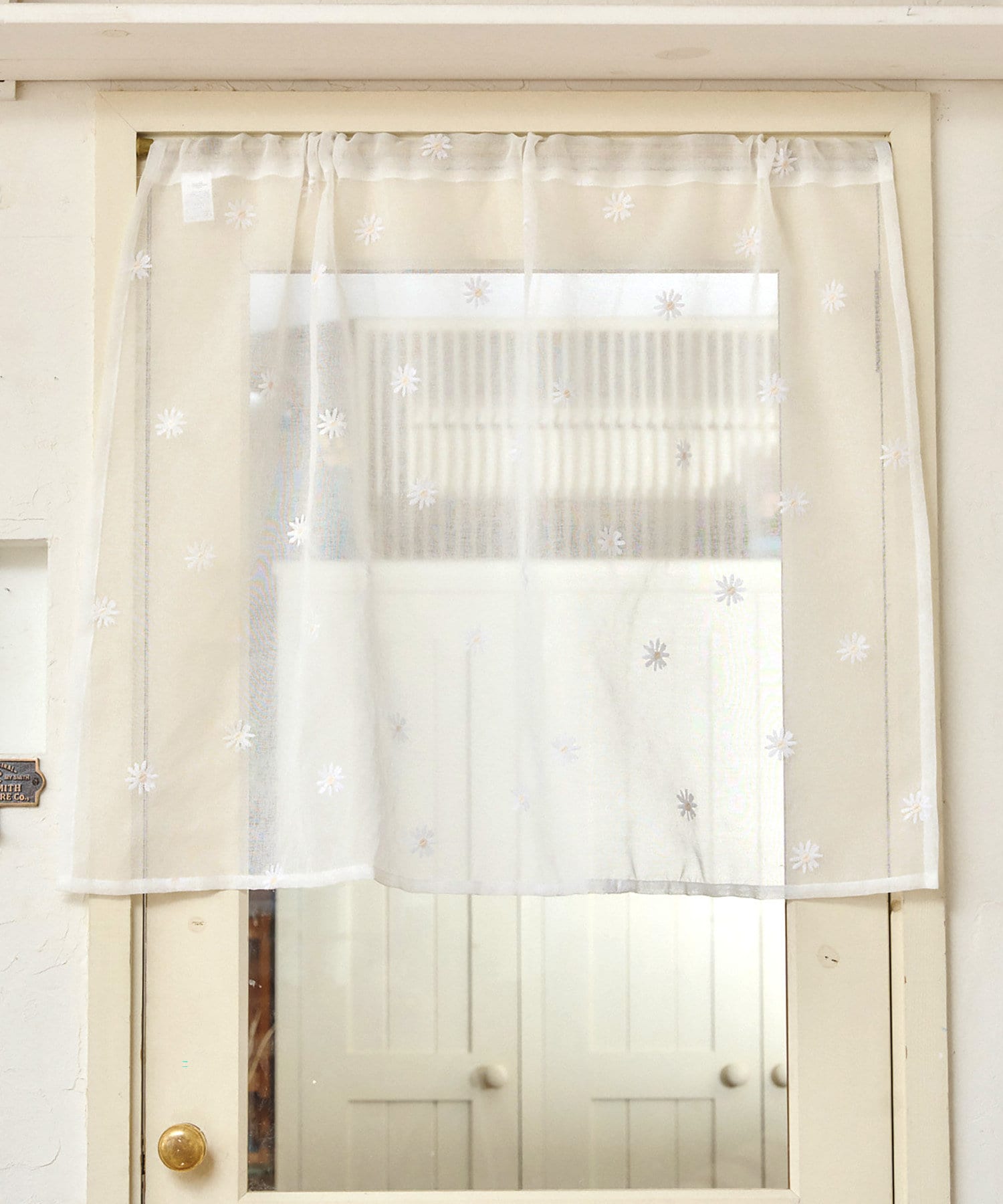 抗菌防臭マーガレット刺繍ロングカフェカーテン