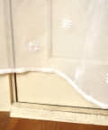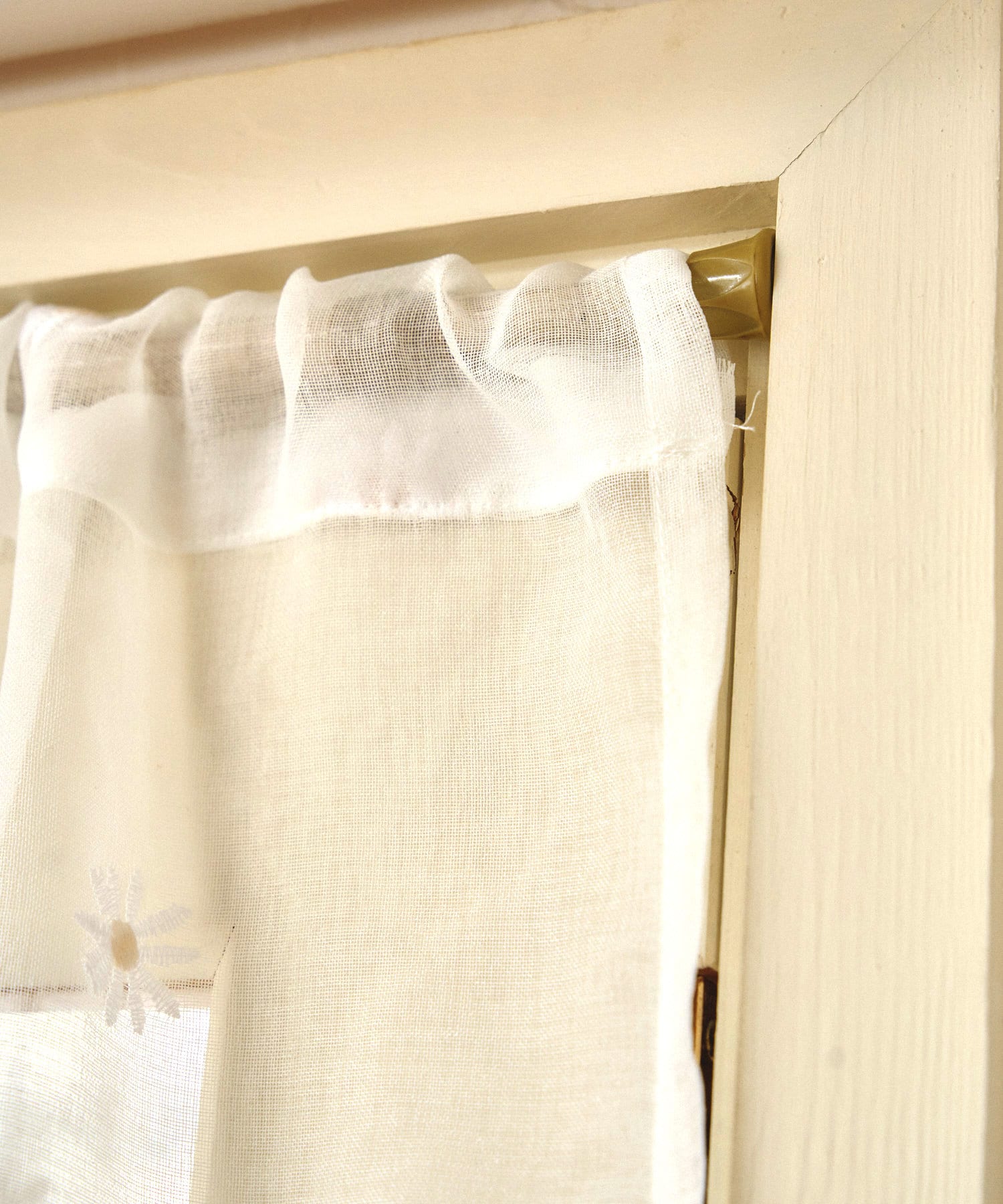 白くてカワイイ花、マーガレットの刺繍が施されたカーテン。