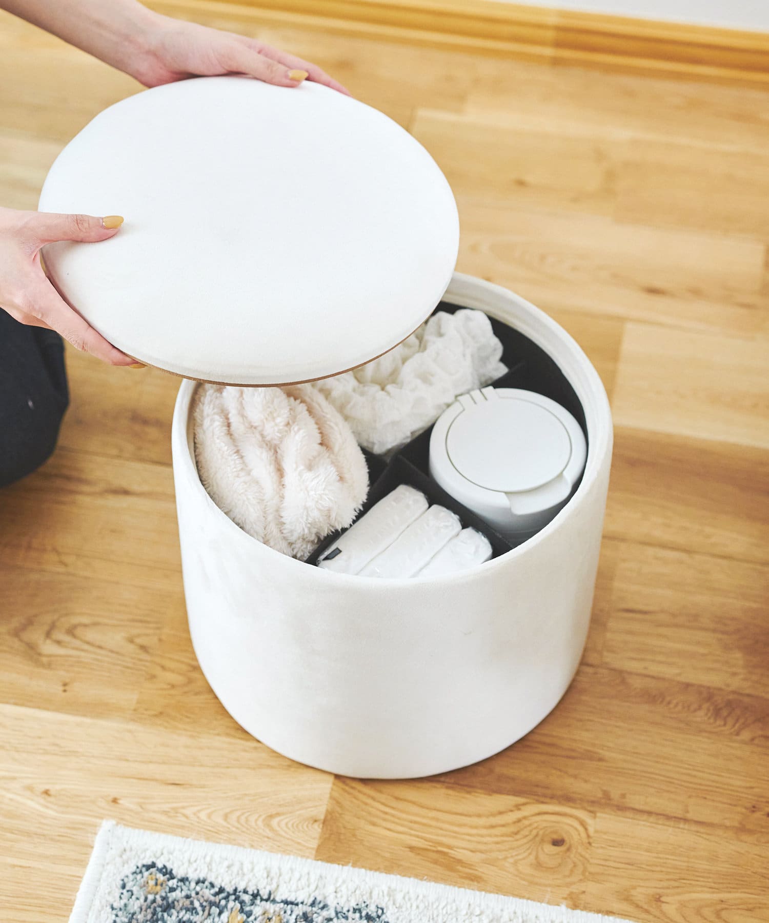 ●蓋部分をひっくり返すとテーブルにもなるのでサイドテーブルとしても使用できます。