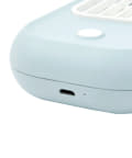 ●電源・風量調節スイッチをクリックすると、電源・充電ランプが白く点灯し、弱の風量で稼働します。