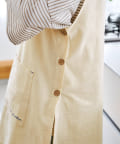 ●さっとかぶってすぐに着られるサイドボタン仕様のエプロン。