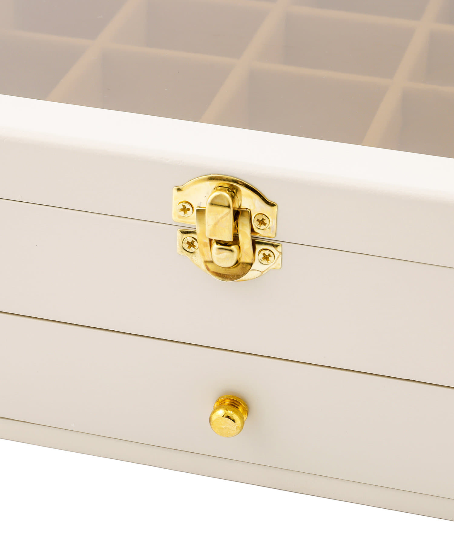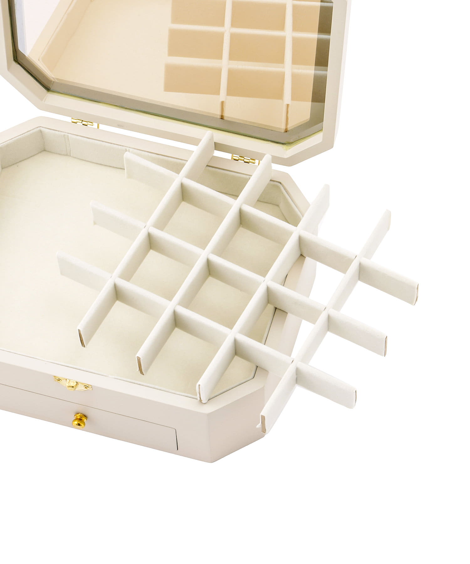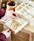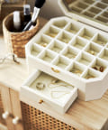 ●下段の引き出し部分は、リングやブレスレットなどを収納できる仕切りつきです。