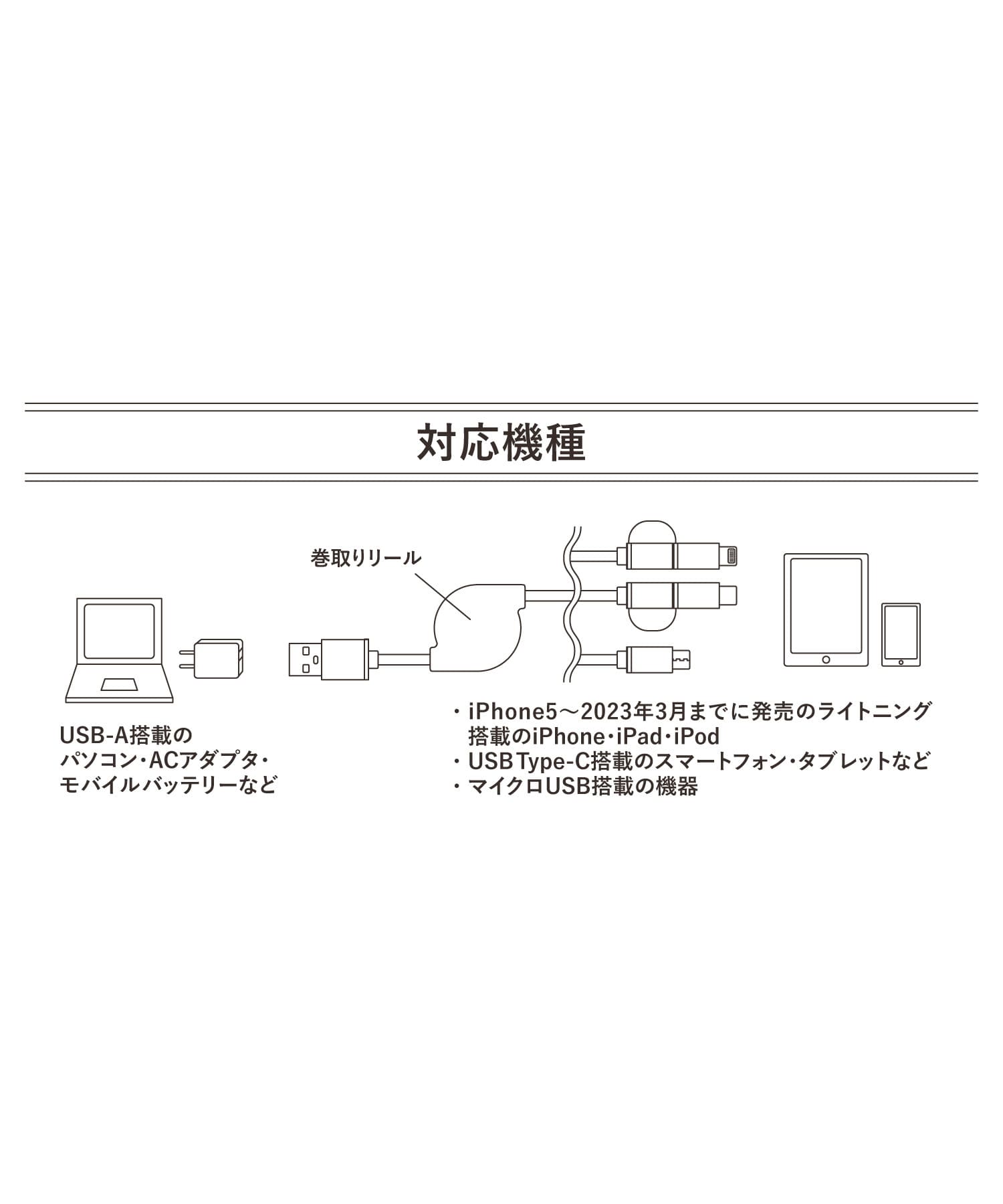 ●ライトニング・タイプC・マイクロUSBコネクタ搭載の3WAY仕様!※3つのコネクタは同時に使用できません。