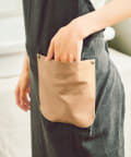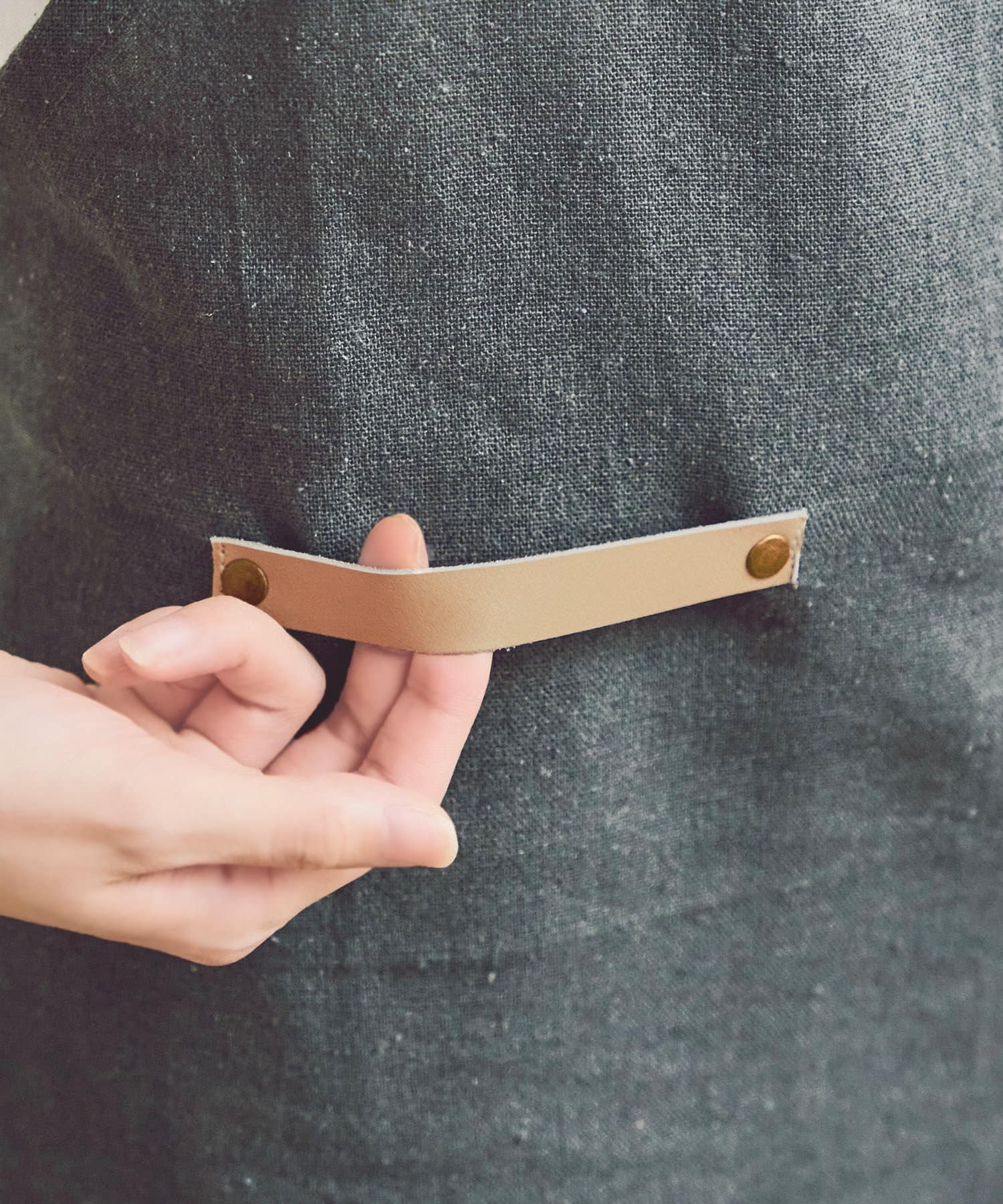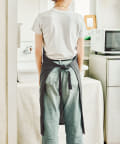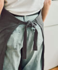 ●フェイクレザーのポケットとループがついたエプロン。