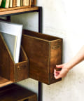 以前買った2段の引き出しの隣に置いています。同じ材質の木でできているので、統一感が生まれました。A4がすっぽり入る作りなので、中が見えず、すっきりと収納できます。