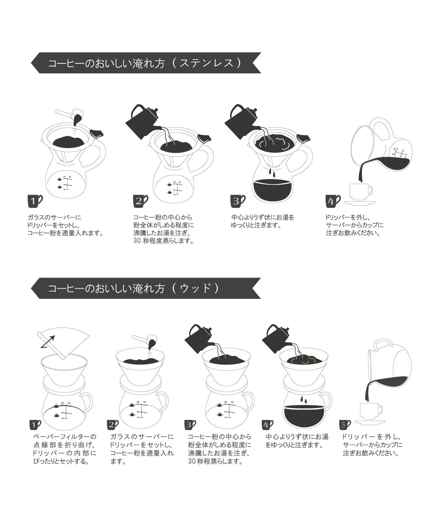 ●紙フィルターを取り付けることでコーヒーの持つ油分や雑味を適度に濾しとるため、すっきりとした味わいが楽しめます。